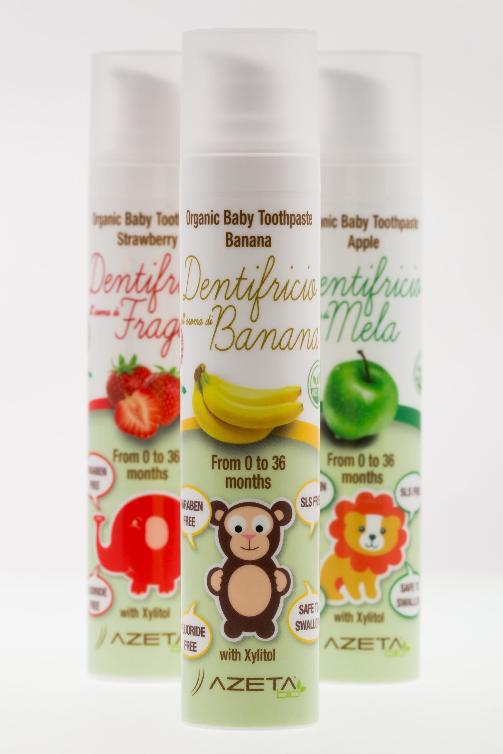 Azetabio organiskās zobu pastas ir saudzīgas pret smaganām un aizsargā zobu emalju no baktērijām. Zobu pastai ir patīkama zemeņu garša.