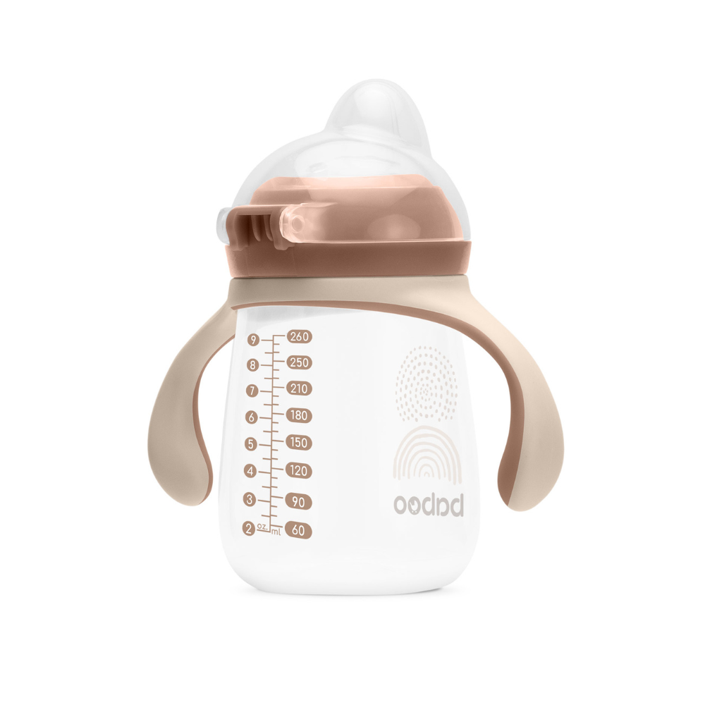 Izstrādāts sadarbībā ar pediatriem, Baboo netekošais krūzīte ar silikona snīpi nodrošina vienmērīgu un ērtu pāreju uz patstāvīgu dzeršanu Jūsu bērnam. Mīkstais un izturīgais silikona snīpis aizsargā Jūsu bērna jutīgos zobus un smaganas, vienlaicīgi novēršot kodienu. Bērnam augot, dzeramā pudele pielāgojas, padarot patstāvīgu dzeršanu vienkāršāku. Vienkārši noņemiet rokturus, un Jūsu bērns var izmantot krūzīti tāpat kā jebkuru citu.