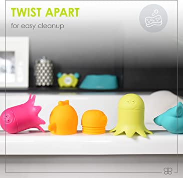 Ar Büddie vannošanās kļūst par īstu jautrību! Atvadies no pelējuma ar šīm jautrajām vannas rotaļlietām, kuras iespējams atskrūvēt uz pusēm, lai tās viegli iztīrītu. Vari tās ievietot arī trauku mazgājamajā mašīnā! Ļauj mazulim pildīt, liet, kost, jaukt un kombinēt šīs smieklīgās radībiņas bez jebkādām raizēm!