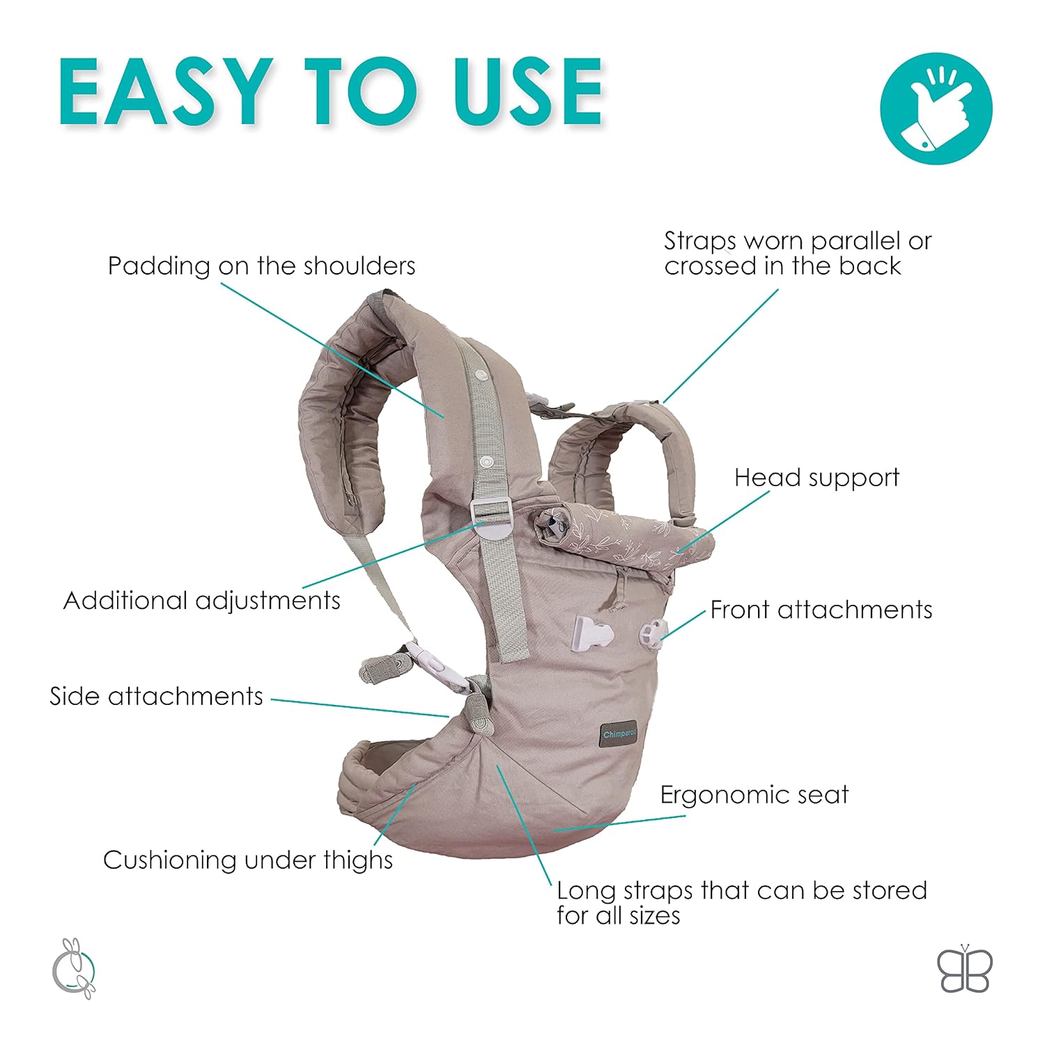 PöpNgo ir ideāla izvēle vecākiem ar aktīvu dzīvesveidu, ļaujot viņiem turpināt savas aktivitātes ar pilnīgu komfortu un stilu! Ar 5 dažādām nēsāšanas pozīcijām mūsu vieglais pārnēsājamais bērnu nesējs ir pielāgojams atbilstoši jūsu mazulīša vajadzībām. Lietošana ir vienkārša – PöpNgo ir aprīkots ar galvas balstu, atbalsta spilvenu un ērtām siksnām, kas nodrošina izcilu komfortu jebkurā situācijā. Tā ir galīgā higiēniskā risinājuma izvēle bezrūpīgām pastaigām! Izstrādāts sadarbībā ar Chimparoo, tas garantē kvalitāti un drošību.