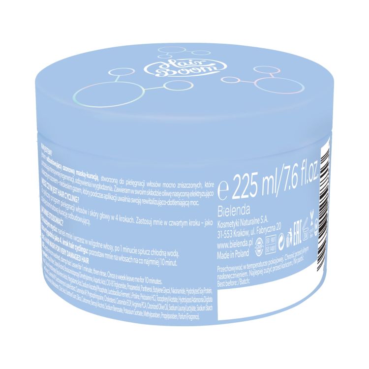 Bielenda HairBoom O3ZON sērija ir radīta intensīvai matu kopšanai, nodrošinot dziļu atjaunošanu un barošanu stipri bojātiem matiem. Atjaunojošā ozona maska satur ozonētu olīveļļu, kas lietošanas laikā atbrīvo atjaunojošās un ar skābekli bagātinošās īpašības, padarot matus stiprākus, gludākus un dzīvīgākus.