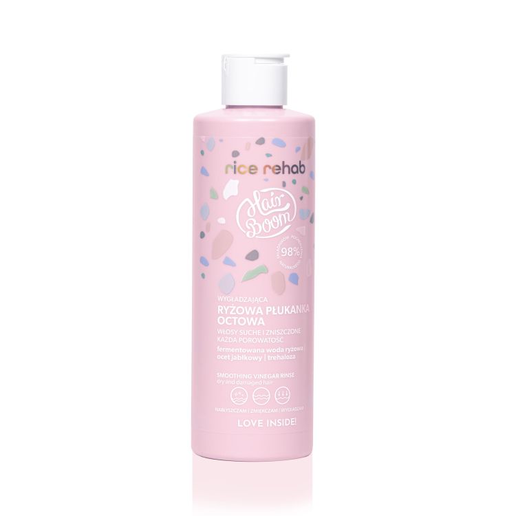 Šis rīsu etiķa skalošanas līdzeklis ir paredzēts sausu un bojātu matu kopšanai, piemērots visām porainībām. Pateicoties dabīgajai formulai ar zemu pH, tas izlīdzina matus, aizver kutikulu, vienmērīgi izlīdzina matu struktūru un piešķir tiem izcilu spīdumu.