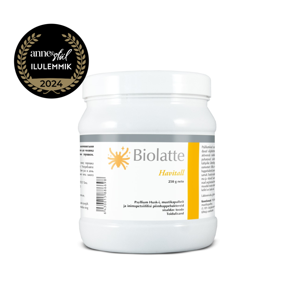 BIOLATTE Havitall satur ceļteku sēnalas, sēklas un dīgstus, savvaļas melleņu pulveri (C vitamīns) un cilvēkam specifiskas pienskābes baktērijas. Lielas (20 mesh) sastāvdaļas var vajadzības gadījumā palēnināt zarnu darbību (piemēram, caurejas vai kairināta zarnu sindroma gadījumā), bet ceļteku šķiedrvielas palielina un mīkstina izkārnījumu masu, veicinot aktivizētu zarnu darbību. Šķiedrvielas attīra zarnas, saistoties ar kaitīgām vielām. Papildus ceļteku šķiedrvielas paaugstina osmotisko spiedienu zarnās, ļaujot pienskābes baktērijām attīstīties ātrāk un efektīvāk. Produkts piemērots arī bērniem.