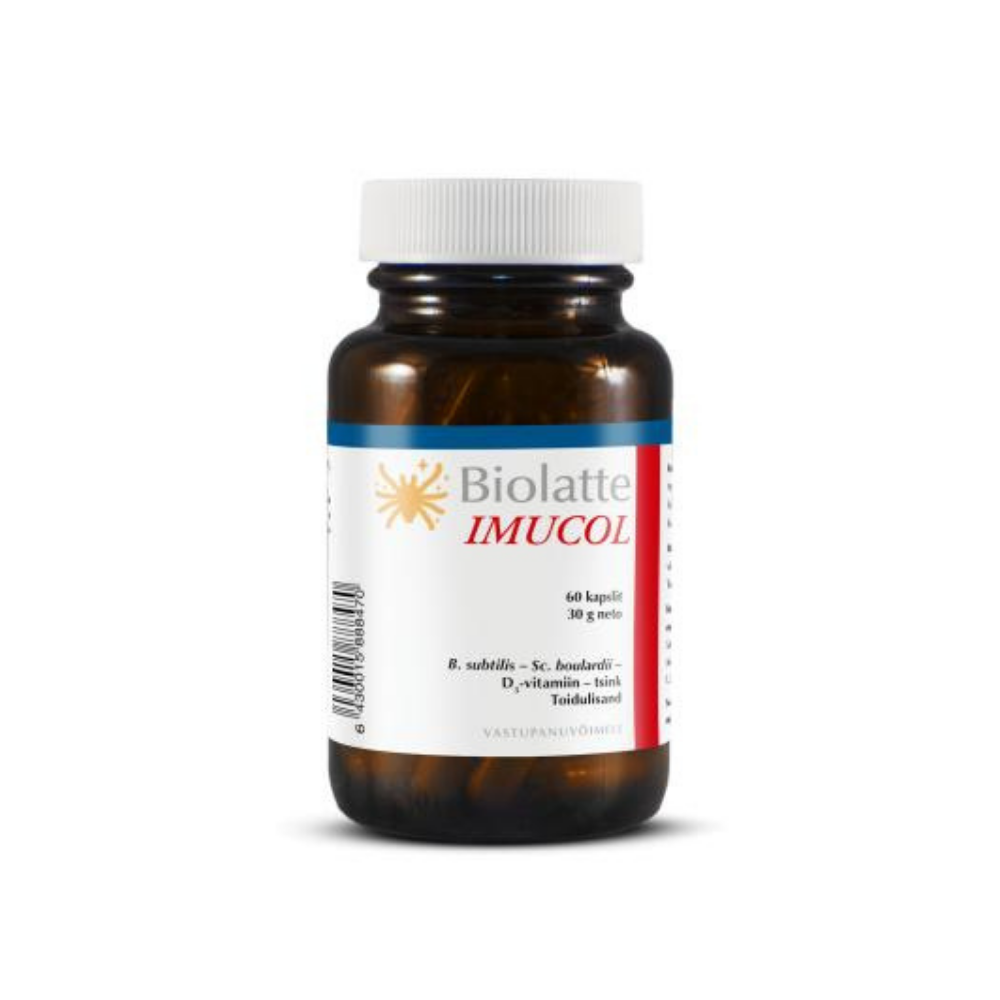 Biolatte IMUCOL ir īpaši izstrādāts, lai atbalstītu imūnsistēmu. Produkts satur rūpīgi atlasītas, tīras sastāvdaļas, kas ir būtiskas organisma noturības atbalstam. Bacillus subtilis – klīniskie pētījumi liecina, ka Bacillus subtilis spēj unikāli efektīvi stimulēt organisma dabisko pretestību. Saccharomyces boulardii ir labi pētīta probiotiskā rauga sēne, kas ievērojami ietekmē gļotādu atjaunošanu. Veselas gļotādas palīdz uzturēt zarnu mikrobu līdzsvaru. D vitamīns3 un cinks veicina normālu imūnsistēmas darbību. Topinambūrs ir lielisks šķiedrvielu avots. Šķiedrvielas veicina zarnu mikrofloras līdzsvaru.