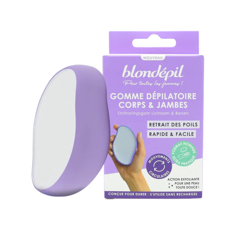 Blondépil depilācijas dzēšgumija ļauj nekavējoties noņemt matus no ķermeņa un kājām ar vieglām un saudzīgām apļveida kustībām. Tā nodrošina ātru, precīzu un nesāpīgu depilāciju.