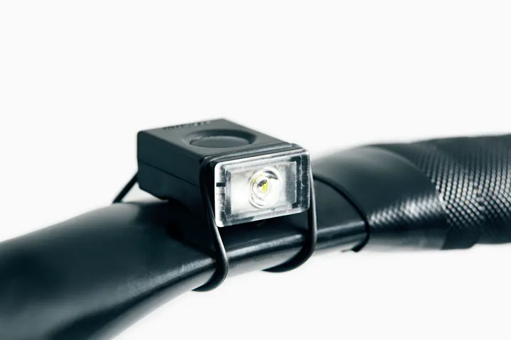 Kompakta un uzlādējama lampa, kas piemērota lietošanai uz velosipēdiem, bērnu ratiņiem, ratiem utt., jebkur, kur ir pieejams stiprinājuma punkts.