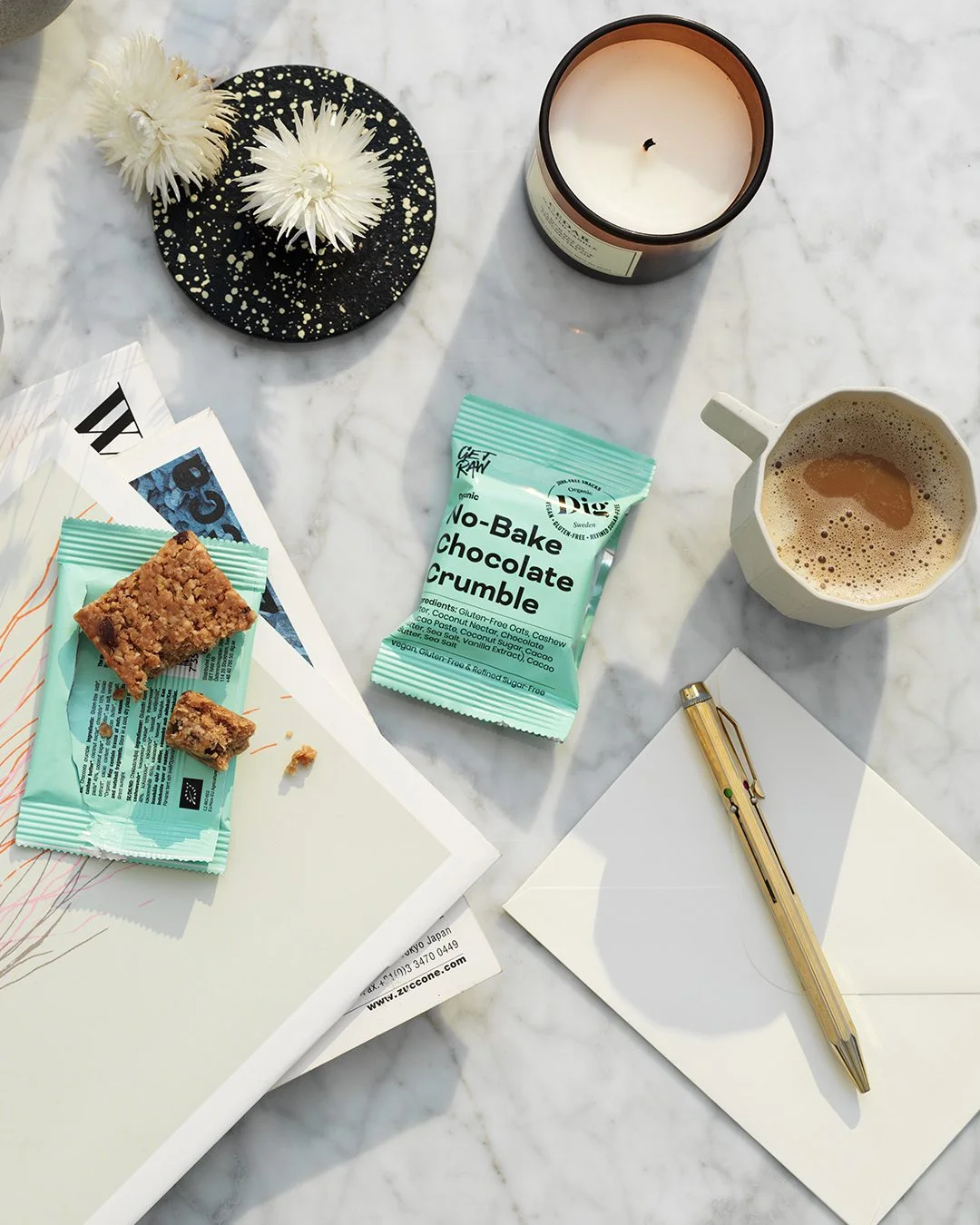 Visas uzkodas ir izgatavotas no dabiskām un sertificētām bioloģiskām sastāvdaļām ar minimālu apstrādi, lai saglabātu visas uzturvielas. Nulles piedevas. Nekad nav rafinēto cukuru. Un vienmēr vegāniski un bez glutēna. Kad dzīve kļūst aizņemta, atpūtieties vairāk! Mūsu uzkodas ir iepakotas tā, lai jūs varētu tās viegli ņemt līdzi un baudīt gardus mirkļus visas dienas garumā. Lieliski piemērots paņemšanai pirms vai pēc treniņa vai kafijas pauzei darbā.