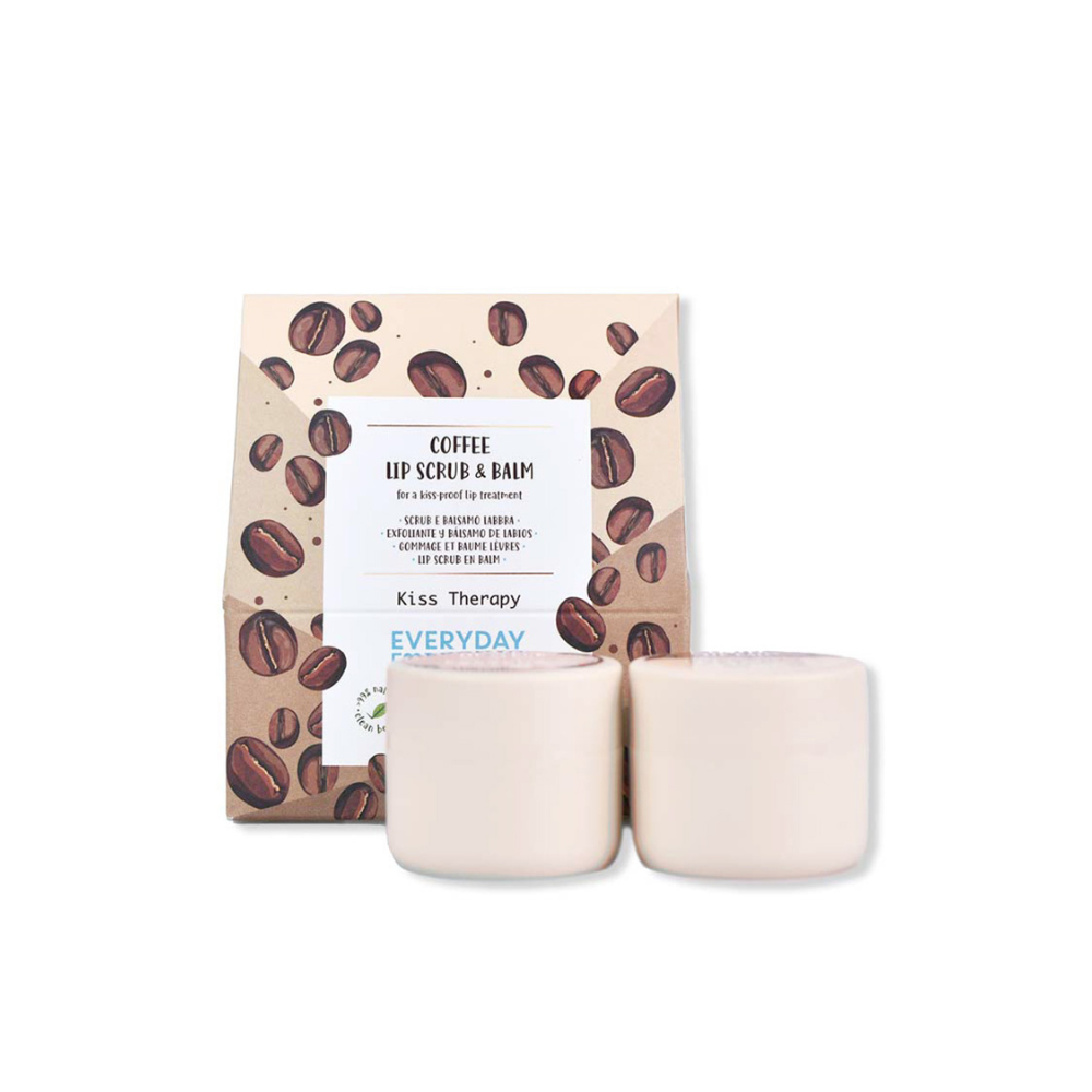 Divpakāpju lūpu kopšana – eksfoliācija un mitrināšana! Produkts satur barojošu kokosriekstu eļļu, kas padara lūpas maigas un samtainas. Turklāt šī sviests, saulespuķu sēklu eļļa un jojobas eļļa mitrina un baro lūpas, aizsargājot pret sausumu un dažādiem laikapstākļiem. Kafijas ekstrakta antioksidantu un enerģizējošās īpašības padara tavas lūpas mīkstas un pilnīgas.