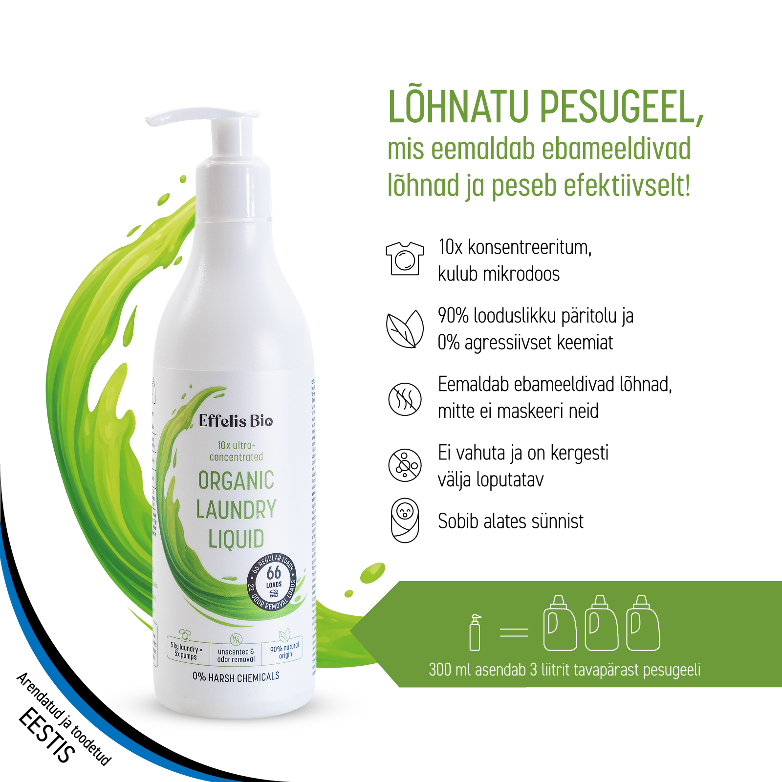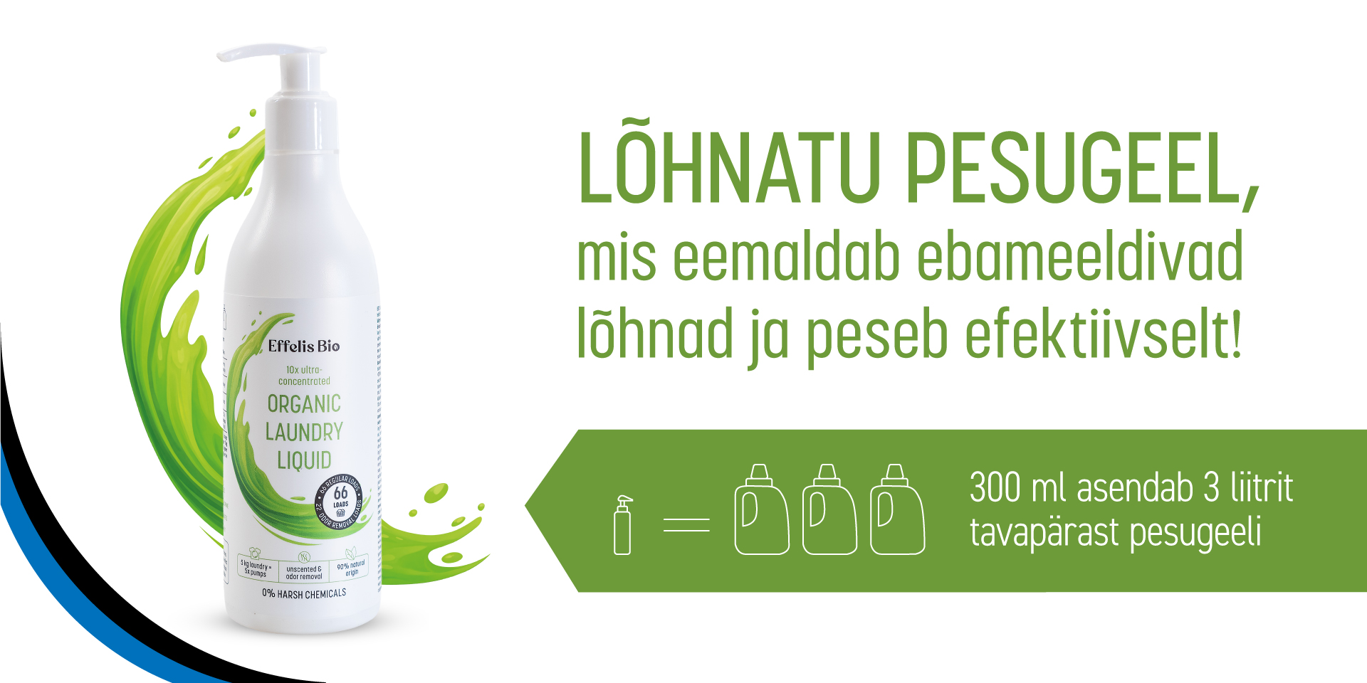 - Efektīvs uz audumiem, taču saudzīgs pret vidi un veselību