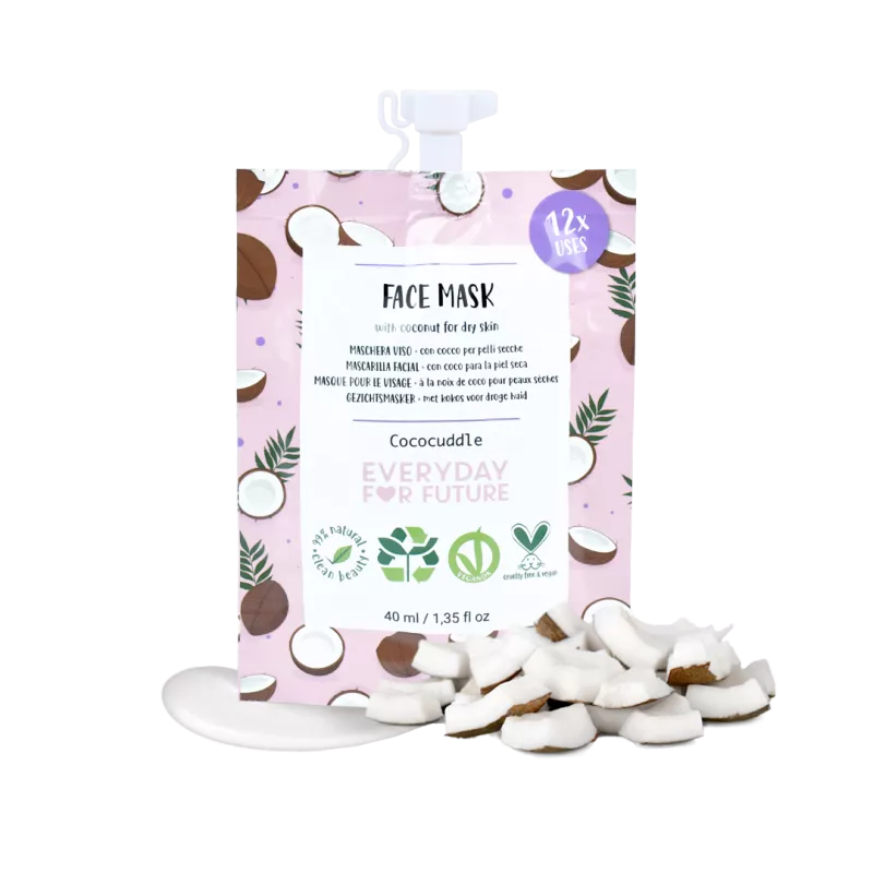 Cococuddle sejas maska apvieno visas sastāvdaļas, kas ir labvēlīgas sausai ādai: saulespuķu sēklu eļļu, kokosriekstu eļļu un rīcineļļu.