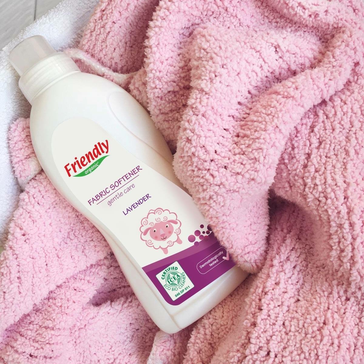 Friendly Organic izmanto uz augiem balstītas mīkstinātājus un organisku ēterisko eļļu, kas padara apģērbu mīkstu un saudzē ādu.