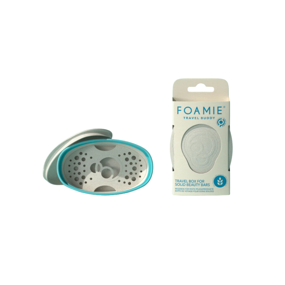 Atkārtoti lietojamais Foamie Travel Buddy futrālis cietajam šampūnam un kondicionierim ceļojot cīnās pret iepakojuma atkritumiem! Izgatavots no 80% kviešu šķiedras un 20% pārstrādātas polipropilēna, ar silikona vāciņu ūdensnecaurlaidīgai uzglabāšanai. Divkāršās pamatnes Travel Buddy novērš ūdens uzkrāšanos un nodrošina optimālu uzglabāšanu.