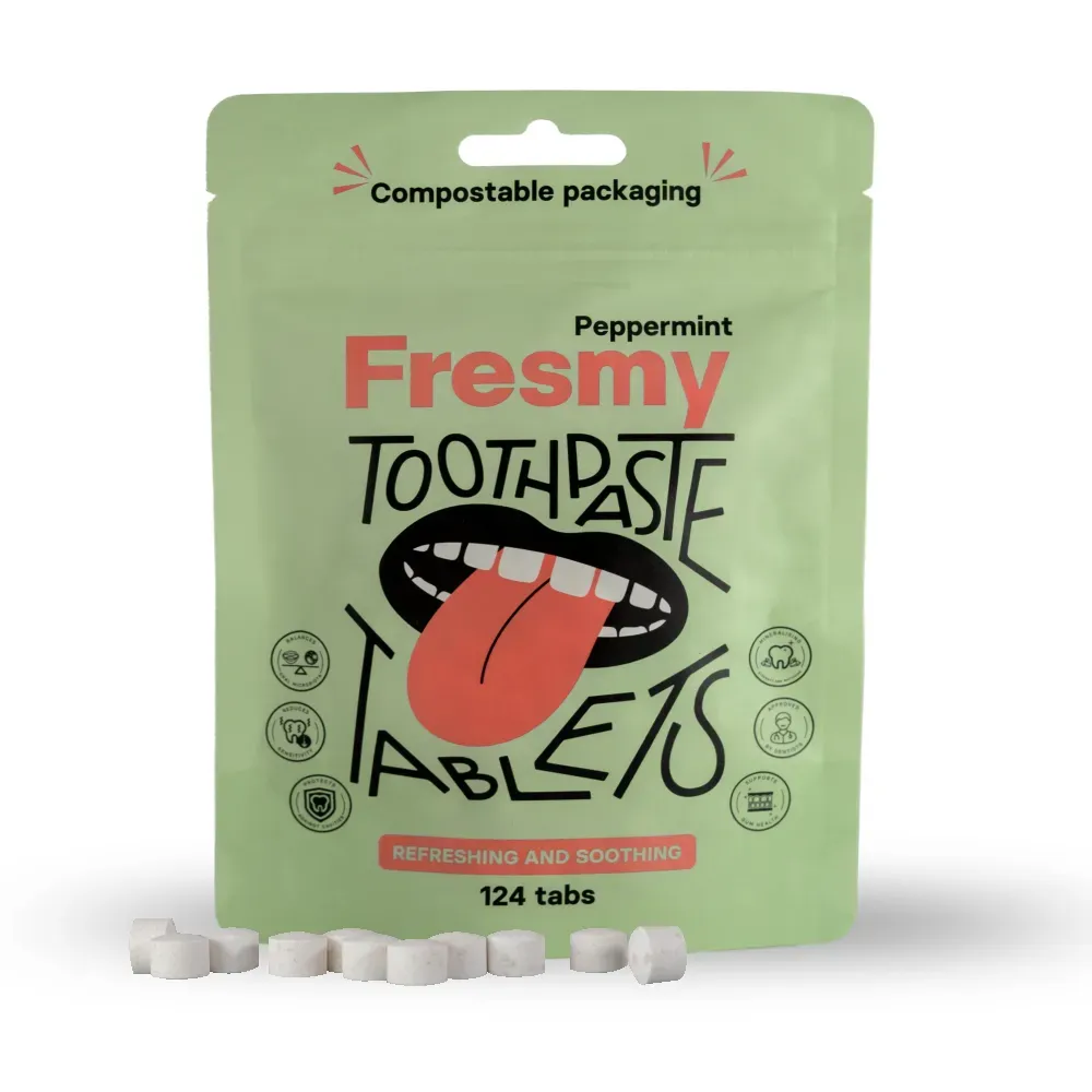 Mētras zobu pastas tabletes satur hidroksiaapatītu (HAp), kas ir netoksiska alternatīva fluoram. Tas dabiski atjauno zobu emalju.