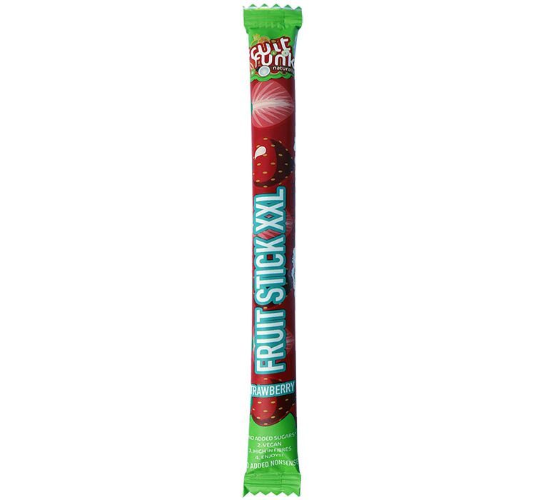 Sastāvdaļas: dateles pasta, ābolu pasta (koncentrēta ābolu sula, koncentrēts ābolu biezenis, želejošā viela: augļu pektīns, antioksidants: askorbīnskābe), citronu koncentrāts, zemeņu pulveris 1%, dabīgas aromatvielas. Uzturvērtība uz 100 g: Enerģētiskā vērtība: 1253 kJ/298 kcal, tauki: 0,5 g, no tiem piesātinātās taukskābes: <0,1 g, ogļhidrāti: 69 g, no tiem cukuri: 63 g*, šķiedrvielas 6,9 g, olbaltumvielas: 1,8 g, sāls: 0,1 g. *Tikai dabīgais cukurs no augļiem. Alergēni: Var saturēt graudaugu, kas satur glutēnu, soju un pienu, riekstus un zemesriekstus pēdas. Var saturēt augļu kauliņu fragmentus.