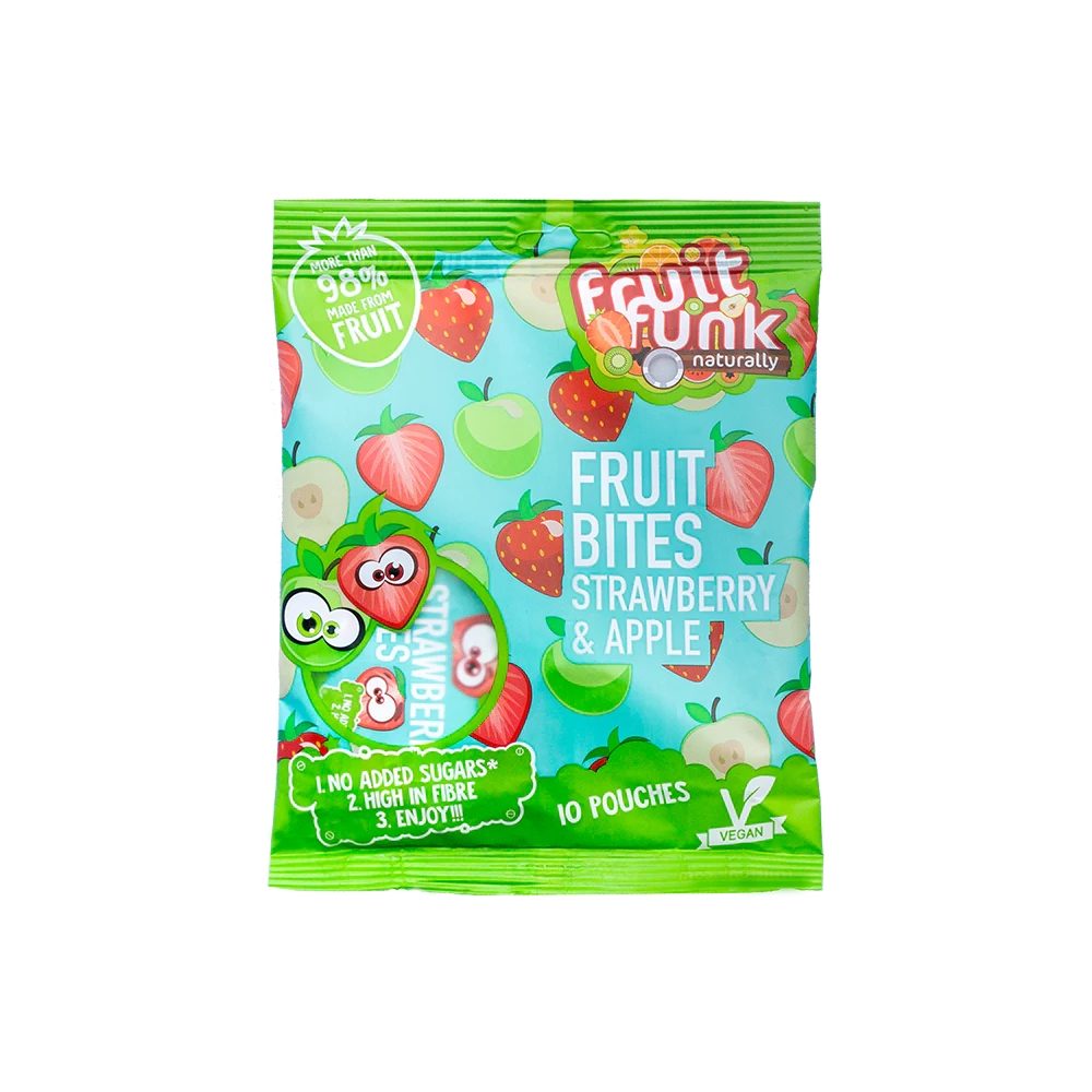 Zemeņu garšas augļu uzkoda – Sastāvdaļas: Augļi 189 g* (koncentrēts ābolu biezenis 79 g*, koncentrēta ābolu sula 65 g*, zemeņu biezenis 43 g*, koncentrēta plūškoka oga sula 1 g*), citrusaugļu šķiedra, želejvielas: augļu pektīns, dabīgs zemeņu aromāts un garšas vielas kopā ar citām dabīgām aromātvielām un garšvielām. *g izmantots, lai pagatavotu 100 g gatavā produkta. Uzturvērtība uz 100 g: Enerģētiskā vērtība: 1394 kJ/329 kcal, tauki: 1,1 g, tostarp piesātinātie tauki: 0,3 g, ogļhidrāti: 73,2 g, tostarp cukuri: 68,8 g*, šķiedrvielas: 7,2 g, olbaltumvielas: 1,8 g, sāls: 0,1 g. *Tikai dabiskie cukuri, kas atrodas augļos.