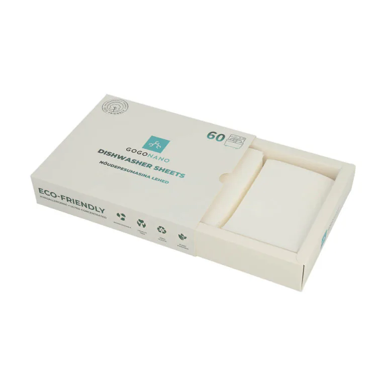 GoGoNano trauku mazgājamās mašīnas loksnes piedāvā vienkāršu un zaļu tīrību jūsu virtuvē. Mūsu gudri inovatīvās, bez smaržas trauku mazgājamās mašīnas loksnes nodrošina efektīvu tīrīšanu bez plastmasas atkritumiem. Katru devu precīzi noteicošā lapa viegli noņem taukus, kafijas un tējas traipus, kā arī nožuvušus ēdiena atkritumus. Loksnes izšķīst tikai 30 sekundēs – neatkarīgi no tā, vai ūdens ir karsts vai auksts – atstājot traukus dzirkstoši tīrus bez pulvera vai želejas palieku. Bez smaržas formula nodrošina dabisku tīrību bez ķīmiskas smaržas.