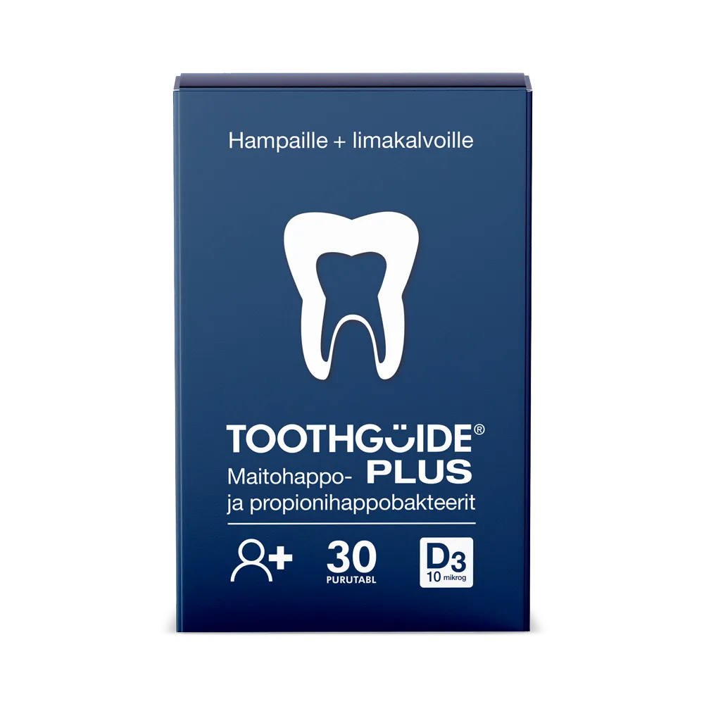ToothGuide® PLUS ir košļājamā tablete, kas paredzēta ikdienas mutes kopšanai un satur trīs pienskābes baktēriju celmu maisījumu – Streptococcus salivarius K12, Lactobacillus rhamnosus GG un Propionibacterium shermanii S – un vitamīnu D3. Tabletes atbalsta mutes mikrobioma līdzsvarošanu, palīdz novērst rauga pārmērīgu augšanu, veicina siekalu ražošanu un atbalsta normālu gan zobu, gan imūnsistēmas darbību.
