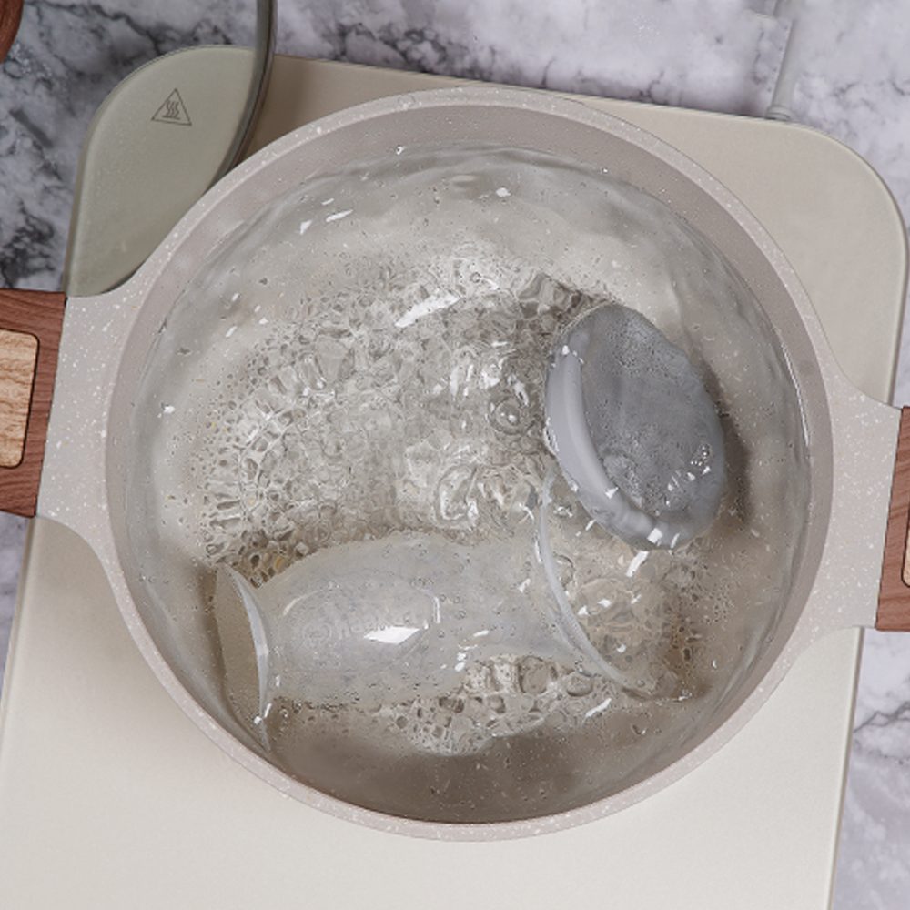 - Sterilizējiet pumpi, ievietojot to karstā ūdenī uz 2-3 minūtēm;