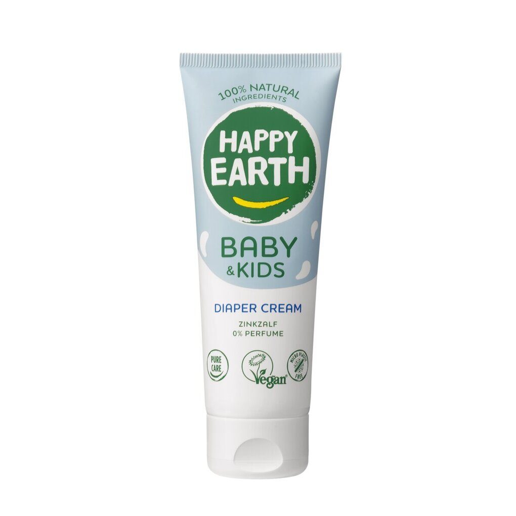Happy Earth autiņkrēms ir bez smaržas un sastāv tikai no 100% dabīgām sastāvdaļām, kas sertificētas ar Natrue. Autiņkrēms nesatur smaržvielas un ķīmiskas vielas, tāpēc jūs varat būt pārliecināti, ka neuzklājat bērna ādai kaitīgus produktus, kas nozīmē, ka šo krēmu var lietot arī uz sakairinātas ādas.