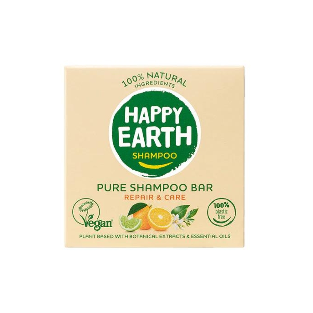 Cietais šampūns ir ne tikai ļoti ērts lietošanai, bet arī īpaši ilgtspējīga alternatīva šķidrajam šampūnam! Happy Earth cietie produkti satur tikai 100% dabīgas sastāvdaļas, ko sertificējis COSMOS. Turklāt šampūns nesatur SLS/SLES un ir brīvs no ziepēm, tāpēc variet būt droši, ka uz matiem nenokļūst kaitīgi produkti. Šampūns ir izstrādāts tieši sausiem un bojātiem matiem. Tas baro un atjauno matus ar šī sviestu un jojobas eļļu. Šampūnam ir brīnišķīgs dabīgs aromāts ar apelsīna un laima kombināciju. Pēc lietošanas jūsu mati būs mīksti, viegli ķemmējami un ar patīkamu aromātu!