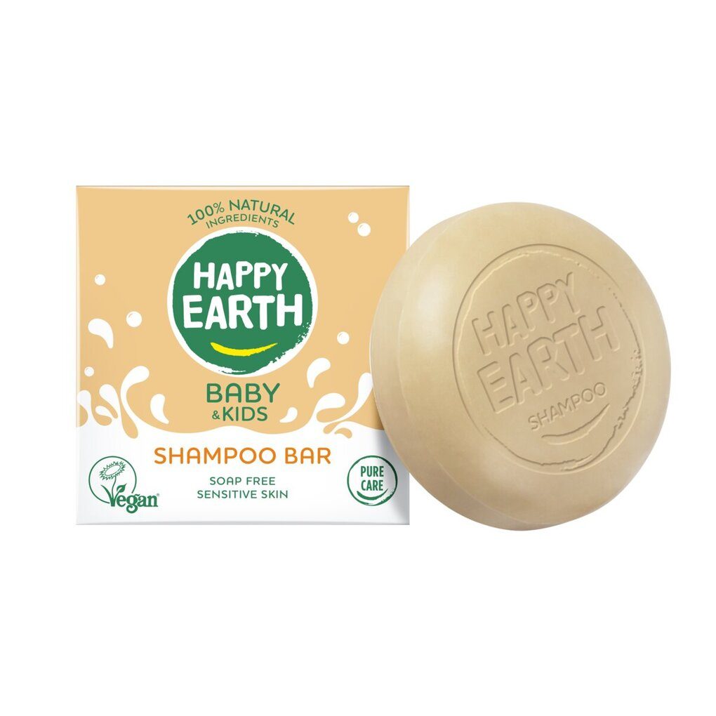 Happy Earth šampūns bērniem un zīdaiņiem satur tikai 100% dabīgas sastāvdaļas, kuras ir sertificējis COSMOS. Turklāt šampūns satur 0% SLS/SLES un ir bez ziepēm, tādēļ jūs varat būt droši, ka bērna ādai netiek uzklātas kaitīgas vielas. Šampūns ir īpaši maigs un rūpīgs jutīgai zīdaiņu un bērnu ādai, un to var lietot no dzimšanas brīža. Tam ir brīnišķīgs, bez alergēniem aromāts. Pēc lietošanas bērna mati būs mīksti, viegli ķemmējami un skaisti smaržos.Šī produkta sastāvs, tāpat kā citiem Happy Earth produktiem, ir vegānisks un brīvs no mikroplastmasas. Šampūns ir bez atkritumiem un pilnībā bez plastmasas. Turklāt cietā šampūna lietošana ir daudz ekonomiskāka: 1 gabals = 3 x 150 ml šampūna pudeles!Sastāvdaļas: Sodium Coco-Sulfate, citronskābe, Avena Sativa kodolu ekstrakts*, cetearyl alkohols, Butyrospermum Parkii sviests*, ūdens (Aqua), laurilglikozīds, poligliceril-2 dipolihidroksistearāts, glicerīns, aromāts (parfīms), Helianthus Annuus sēklu eļļa, Simmondsia Chinensis sēklu eļļa*, Daucus Carota Sativa sakņu ekstrakts*, Rosmarinus Officinalis lapu ekstrakts*, augu eļļa, lecitīns, PCA glikēriloleāts, nātrija kokoilglutamāts, kokoglikozīds, glikēriloleāts, nātrija cetearyl sulfāts, propilēnglikols