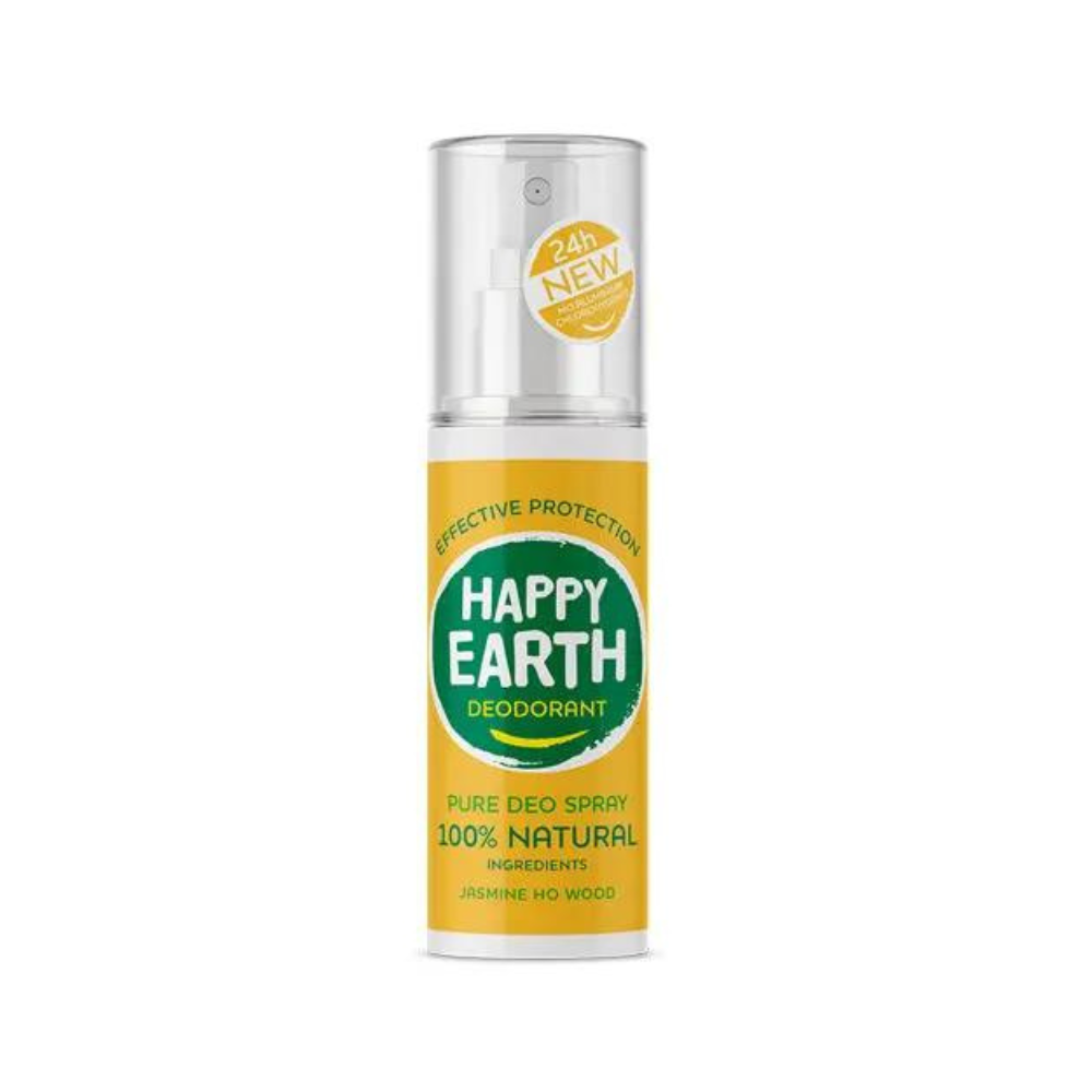 HAPPY EARTH DEZODORANTS ir 100% dabīgs, 100% efektīvs un nesatur 0% ķimikāliju. Apburoša jasmīna un Ho koka augu ekstrakti, ādu nomierinošs organiskās alvejas ekstrakts un ēteriskās eļļas. HAPPY EARTH DEZODORANTĀ mēs izmantojam tikai sastāvdaļas, kas padara Jūsu ādu laimīgu. Ja uzklājat kaut ko uz savas ādas, ir svarīgi zināt, ka tas nesatur piesārņojošas un nepatīkamas sastāvdaļas, piemēram, ķimikālijas, alkoholu vai citus kaitīgus piedevas. Tāpēc mēs lepni nesam NATRUE un Vegan Society sertifikātus. Un mūsu dezodorantu pudeles ir izgatavotas no 100% pārstrādātas plastmasas. Tā Jūs rūpējaties ne tikai par sevi, bet arī par mūsu planētu! Lai Jūs būtu laimīgs: