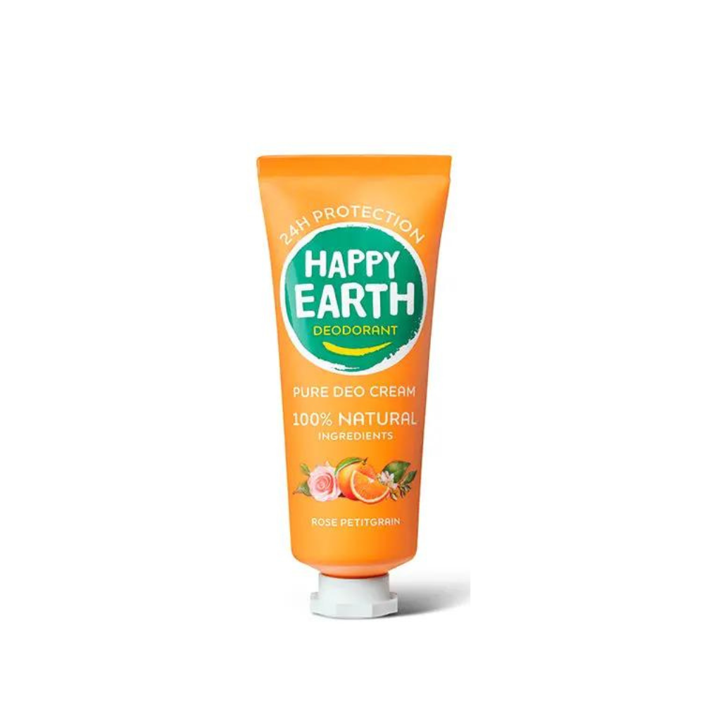 HAPPY EARTH dezodoranta krēms Rose Petitgrain ir 100% dabīgs, vegānisks dezodorants ar sastāvu, kas iepriecina gan Tavu ādu, gan Zemi. Happy Earth ir nācis klajā ar jaunumu – dezodoranta krēmu tūbiņā! Unikāls sastāvs no dabīgām sastāvdaļām, lai Tavas paduses saglabātos svaigas visu dienu. Turklāt viss ērti lietojamā tūbiņā, kas izgatavota no cukurniedrēm.