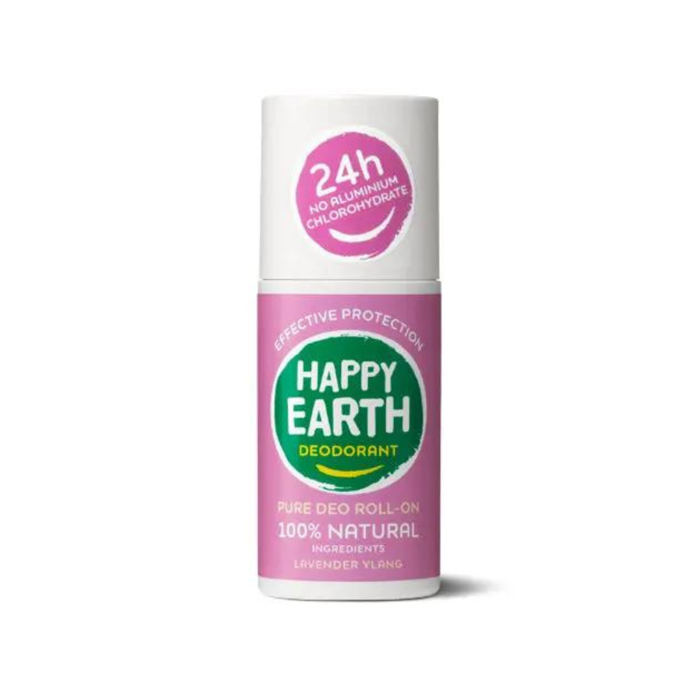 HAPPY EARTH DEODORANT ir 100% dabisks, 100% efektīvs un satur 0% ķīmisku vielu. Nomierinoša lavanda un ilang-ilang, botāniskie ekstrakti, ādu nomierinošs bioloģiskais aloe vera un ēteriskās eļļas. HAPPY EARTH DEODORANT sastāvā mēs izmantojam tikai sastāvdaļas, kas padara ādu laimīgu. Lietojot ko uz ādas, ir patīkami zināt, ka nav piesārņojošu un nepatīkamu sastāvdaļu, piemēram, ķimikāliju, spirta vai citu kaitīgu piedevu. Tāpēc lepni nesam NATRUE un Vegan Society sertifikātus. Mūsu dezodoranta pudeles izgatavotas no 100% pārstrādātas plastmasas. Tātad rūpējaties ne tikai par sevi, bet arī par planētu! Lai padarītu jūs laimīgu: