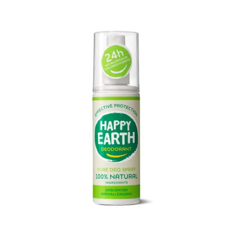 HAPPY EARTH DEODORANT ir pasaulē tīrākais dezodorants: 100% dabisks, 100% efektīvs un nesatur 0% ķīmisko vielu. Dezodorants bez smaržas, hipoalerģisks, ar nomierinošu organisko alveju. HAPPY EARTH DEODORANT sastāvā izmantojam tikai tādas sastāvdaļas, kas padara tavu ādu laimīgu. Kad uzklāj kaut ko uz ādas, ir patīkami zināt, ka tajā nav piesārņojošu vai nepatīkamu sastāvdaļu, piemēram, ķimikāliju, spirta vai citu kaitīgu piedevu. Tāpēc mēs ar lepnumu nesam NATRUE un Vegan Society sertifikātus. Mūsu pudeles ir izgatavotas no 100% pārstrādātas plastmasas. Tādā veidā tu rūpējies ne tikai par sevi, bet arī par mūsu planētu! Lai tu justos laimīgs: