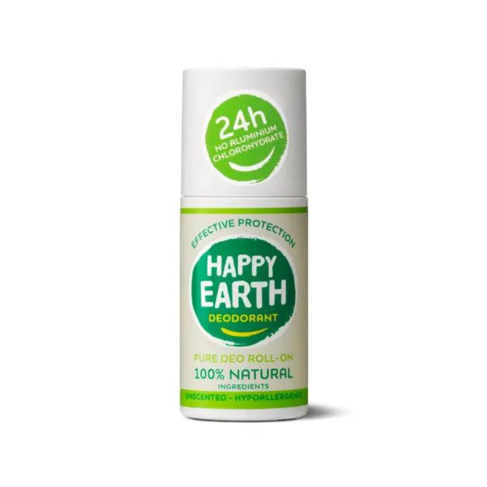 HAPPY EARTH DEODORANT ir pasaulē tīrākais dezodorants: 100% dabisks, 100% efektīvs un satur 0% ķīmisko vielu. Bezsmaržas hipoalerģisks dezodorants ar ādu nomierinošu organisko alveju. HAPPY EARTH DEODORANT mēs izmantojam tikai tādas sastāvdaļas, kas padara jūsu ādu laimīgu. Uzklājot kaut ko uz ādas, ir patīkami zināt, ka nav nekādu piesārņojošu un nevēlamu sastāvdaļu, piemēram, ķīmisko vielu, spirta vai citu kaitīgu piedevu. Tāpēc mēs ar lepnumu nesam NATRUE un Vegan Society marķējumu. Mūsu pudeles ir izgatavotas no 100% pārstrādātas plastmasas. Tādā veidā jūs rūpējaties ne tikai par sevi, bet arī par mūsu planētu! Lai jūs būtu laimīgs: