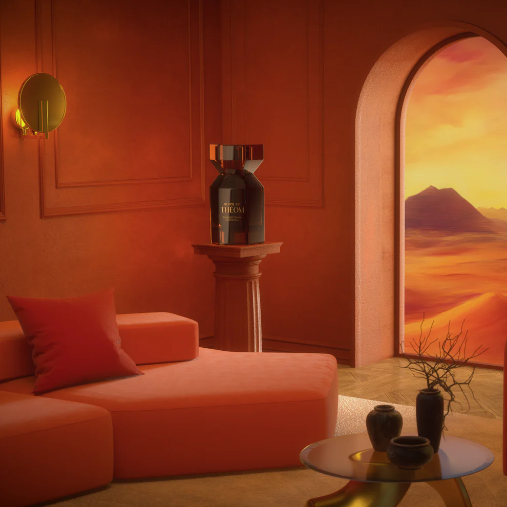 Sirds notīs atveras aromātiskais ģerānijs un elegantā roze, ko papildina maiga saldo notu saldums – kā mirkļa silts pieskāriens, kas paliek atmiņā. Bāzes notīs saplūst dzintara koka dziļums, samtains muskusa apskāviens un krēmīgā tonkas pupas un vaniļa, paliekot uz ādas kā vakara tuksneša klusa balss.