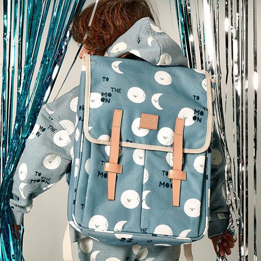 Skolas mugursoma, kas paredzēta sākumskolas skolēniem. Ir nodalījumi A4 izmēra un 24×32 cm formāta priekšmetiem.