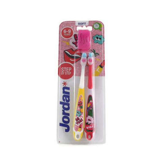 Jordan bērnu zobu birste ir piemērota bērniem vecumā no 6 līdz 9 gadiem. Iepakojumā ir 2 zobu birstes.
