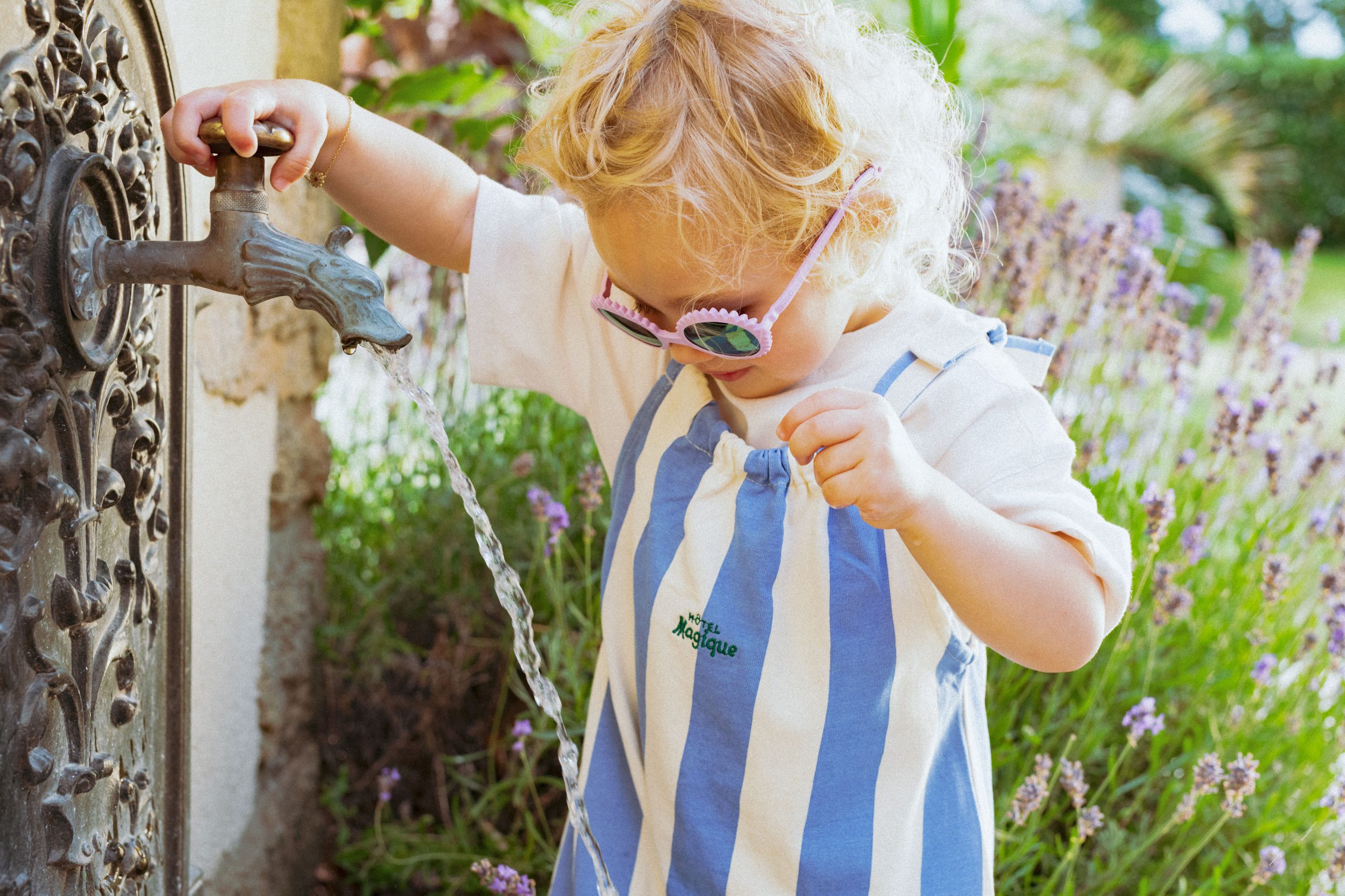 Ultra vieglas Fleur saulesbrilles ar apaļu pantos formu, rāmis dekorēts ar ziedu ziedlapiņām, un tās ir aprīkotas ar spoguļlēcām (polikarbonāts). Brilles ir 100% ražotas Francijā un piemērotas bērniem vecumā no 0–4 gadiem (0–1, 1–2, 2–4 gadi). Pieejamas dažādās krāsās.