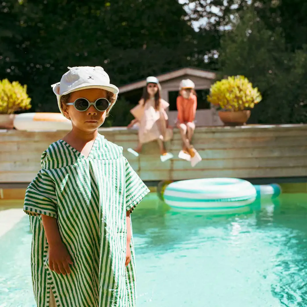 Camper cepure ir obligāts aksesuārs stilīgiem un piedzīvojumu kāriem bērniem. Tai ir vintage stila noapaļots nagu aizsargs un plats maliņa, kuru var nolaist, lai aizsargātu kaklu. Izgatavota Itālijā no GOTS sertificētas organiskās kokvilnas, tā nodrošina optimālu aizsardzību pret sauli aktivitātēm brīvā dabā. Turklāt cepurē ir unikāla sistēma brillēm pakāršanai no iekšpuses.