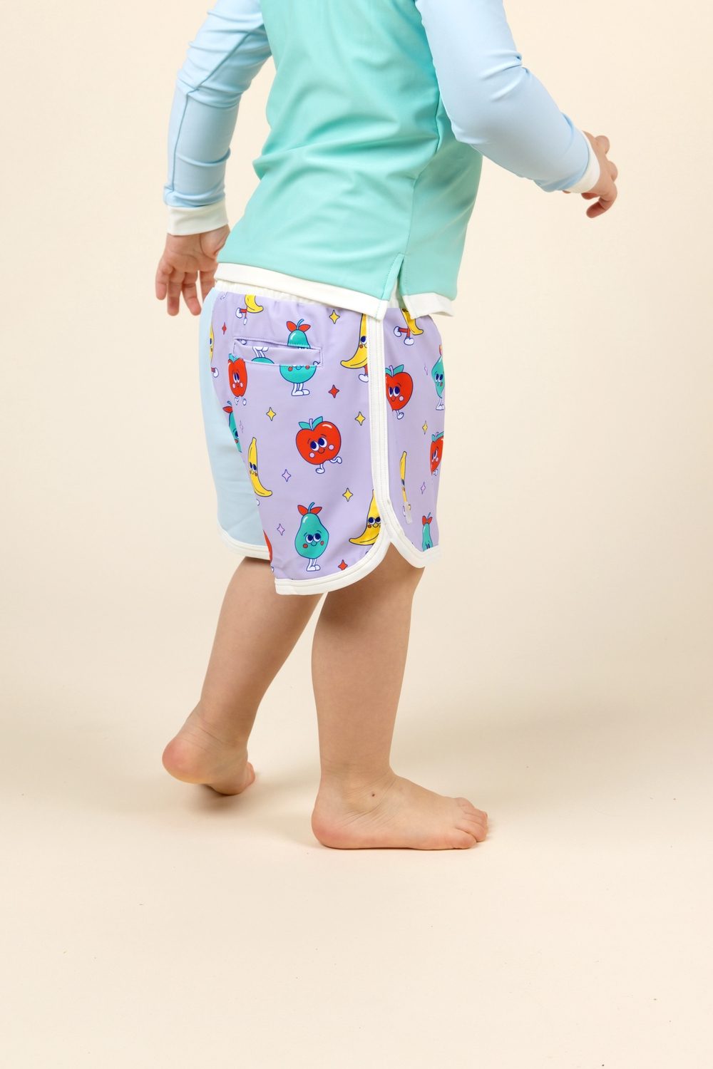 Šortiem ir UV sensors, kas maina krāsu, kad saule kļūst stiprāka (jo violetāks tonis, jo nepieciešama lielāka aizsardzība) – vienkāršs veids, kā mācīt bērniem rūpēties par sevi saulē.