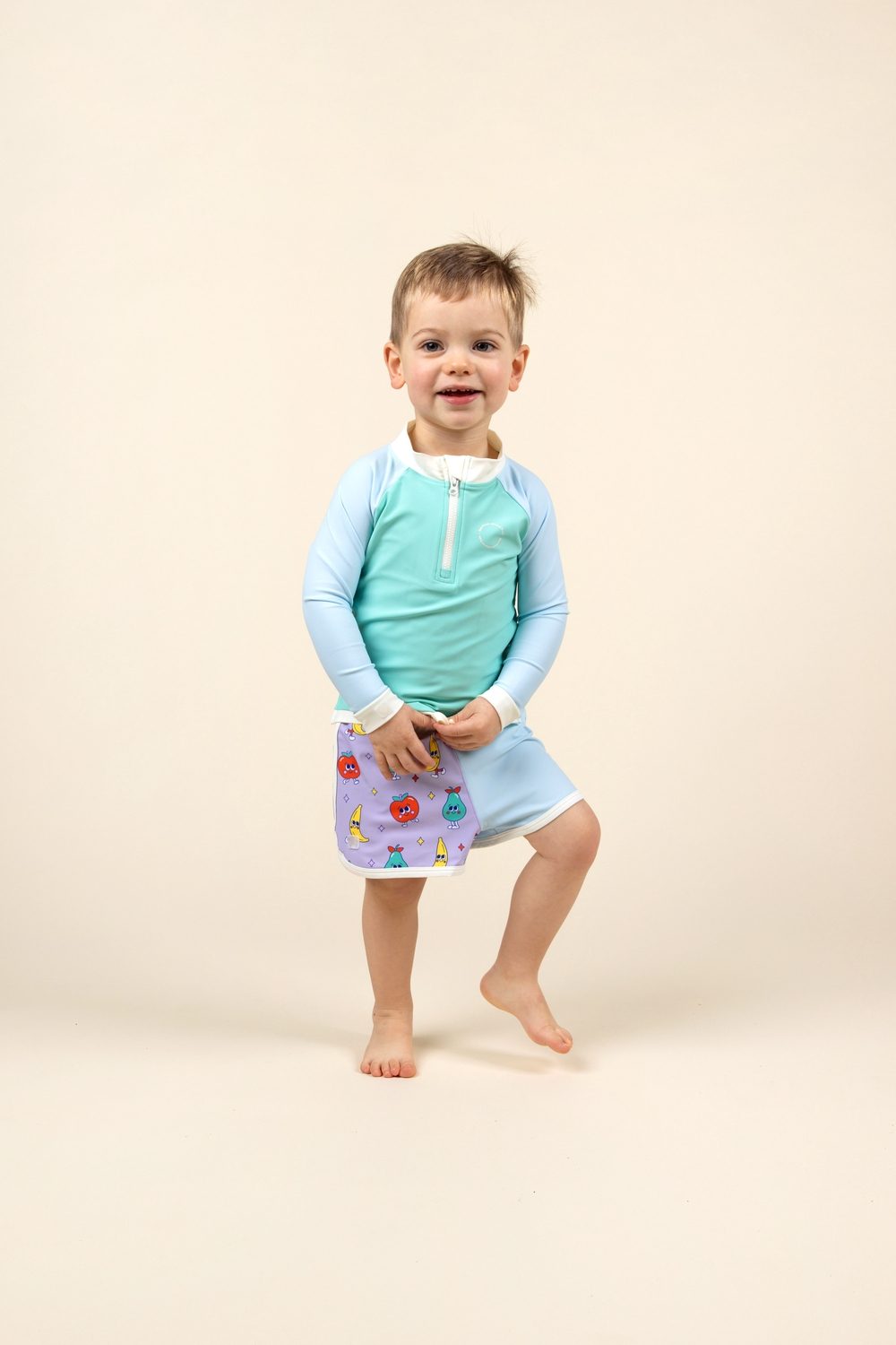 Šortiem ir UV sensors, kas maina krāsu, kad saulesspīdums pastiprinās (jo vairāk violets tonis, jo vairāk aizsardzības nepieciešams) – vienkāršs veids, kā bērniem iemācīt rūpēties par aizsardzību pret sauli.