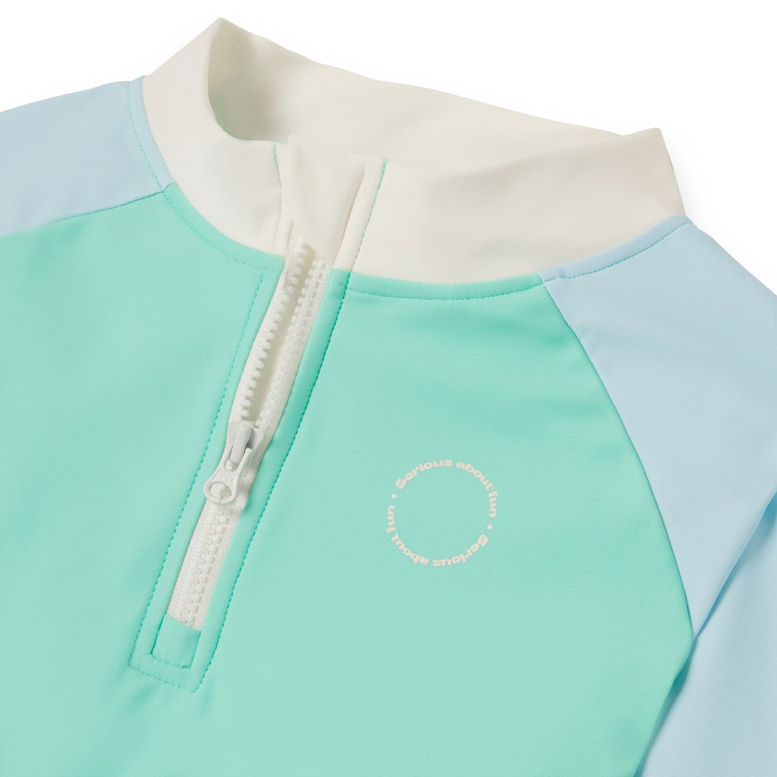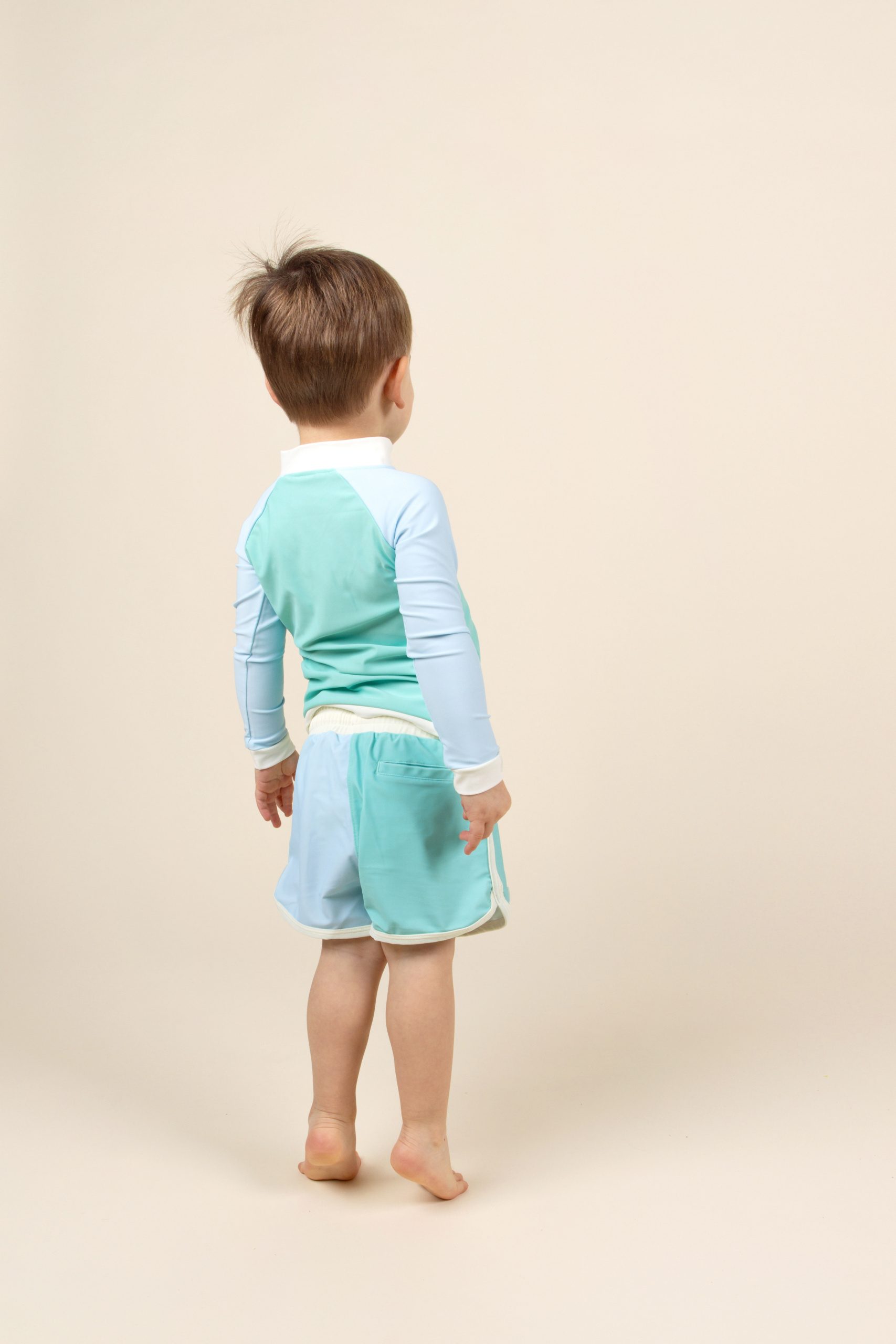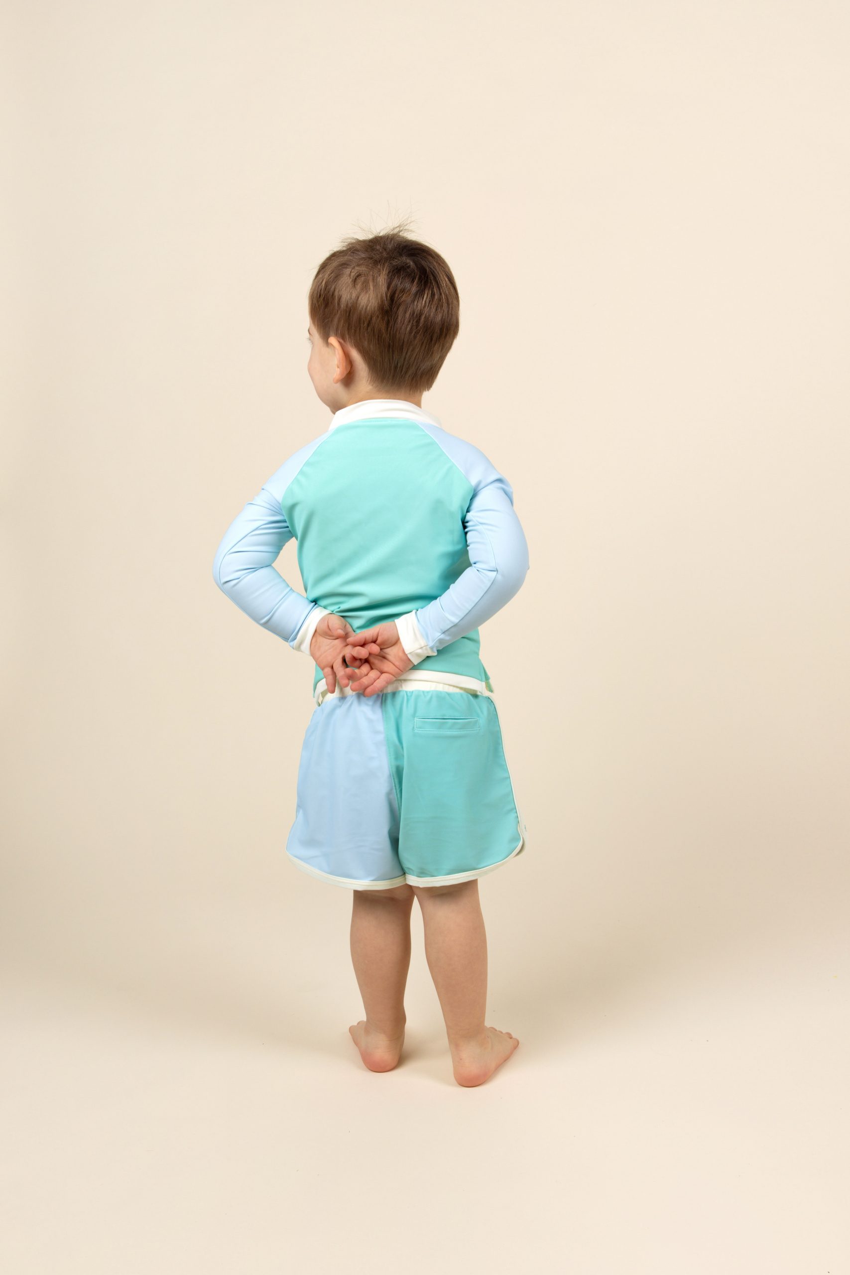 Garām piedurknēm UPF 50+ audums nodrošina pilnīgu aizsardzību no UVA un UVB stariem un palīdz aizsargāt bērnu delikāto ādu – dabiski, bez papildu apstrādes.