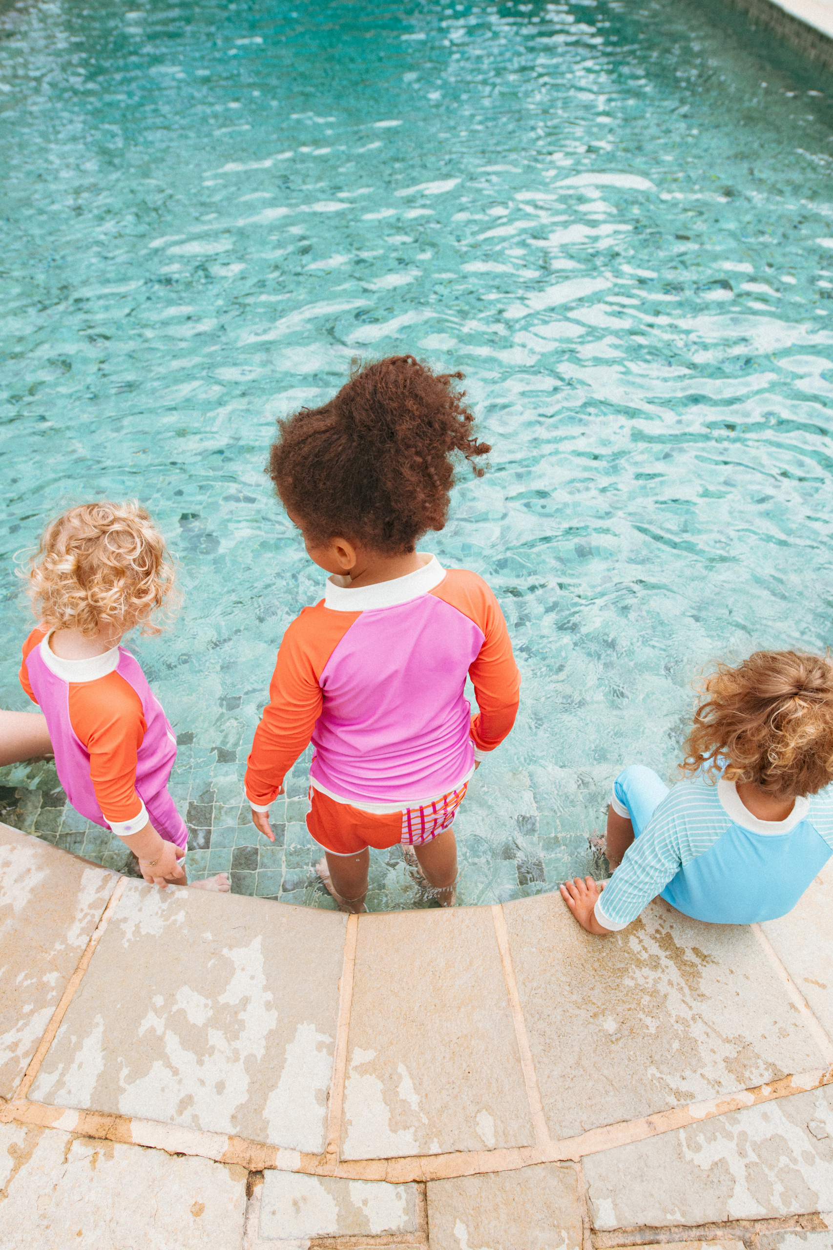 Garo piedurkņu UPF 50+ audums nodrošina pilnīgu aizsardzību no UVA un UVB stariem un palīdz uzturēt bērnu jutīgo ādu drošībā – dabiski, bez papildu apstrādes.