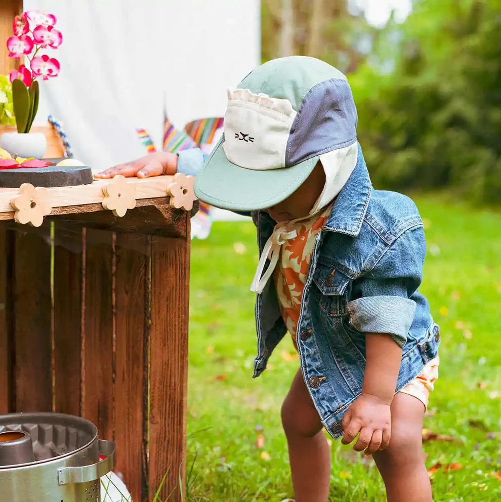 Atklājiet mūsu sezonas favorītu: Camper cepuri! Iedvesmota āra aktivitātēm un dzīvesstila, tā ir piemērota jebkurai situācijai. Ideāli piemērota ģimenes pastaigām vai individuālai izpētei. Cepurei ir pagarināts nagu daļa aizmugurē kakla aizsardzībai. Izgatavota Itālijā no GOTS sertificētas organiskās kokvilnas un nodrošina UPF50+ saules aizsardzību. Pieejama trīs izmēros un trīs jauktās krāsās – neaizstājams aksesuārs vasarai. Unikāla sistēma saulesbrillu piestiprināšanai.