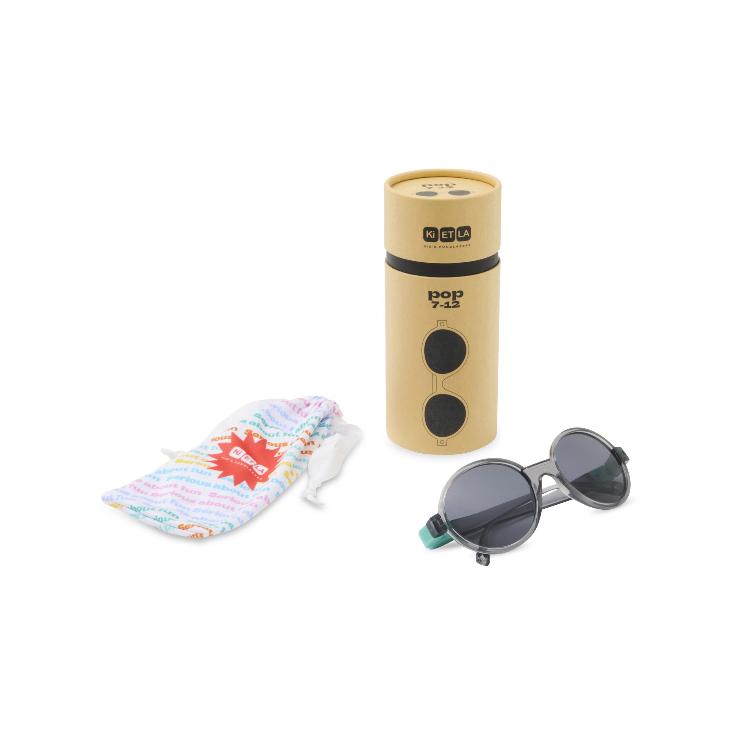 VIBE kolekcijas Pop modelim ir apaļa pantos forma un izturīgs rāmis ar 180° atveramiem kājiņām. Daļēji biezās, viegli caurspīdīgās kājiņas un viendabīgais matētais pārklājums piešķir šiem saulesbrillēm raksturu un sportisku stilu. Pieejamas divos izmēros (4–7 un 7–12), lai nodrošinātu labu piegulšanu dažāda vecuma bērniem.