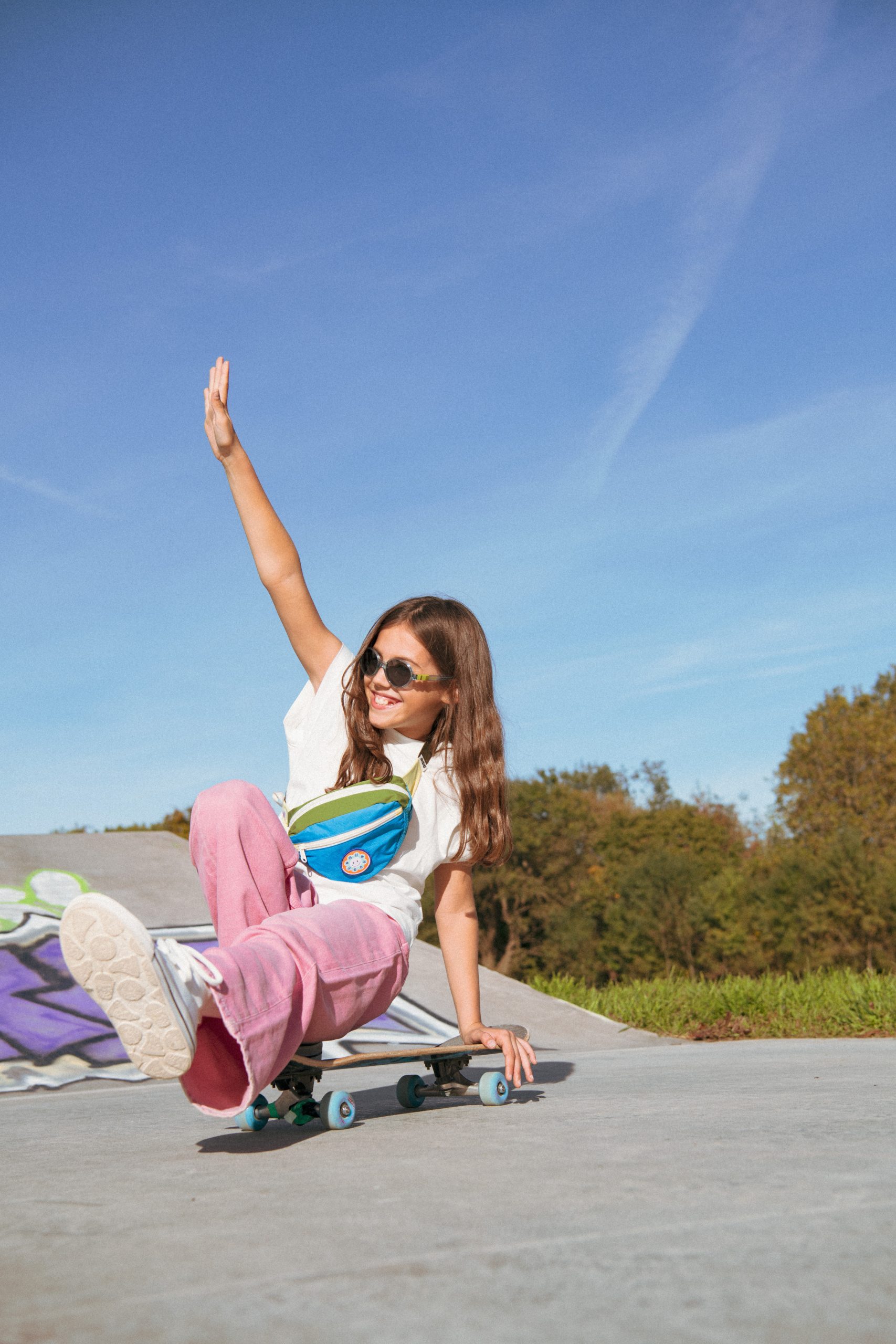 VIBE kolekcijas Pop modelim ir apaļas pantos formas un izturīgs ietvars ar kājiņām, kas atveras 180°. Pusbiezas, nedaudz caurspīdīgas kājiņas un vienmērīgais matētais tonis piešķir saulesbrillēm raksturu un sportisku stilu. Pieejams divos izmēros (4–7 un 7–12), lai nodrošinātu ērtu valkāšanu visu vecumu bērniem.
