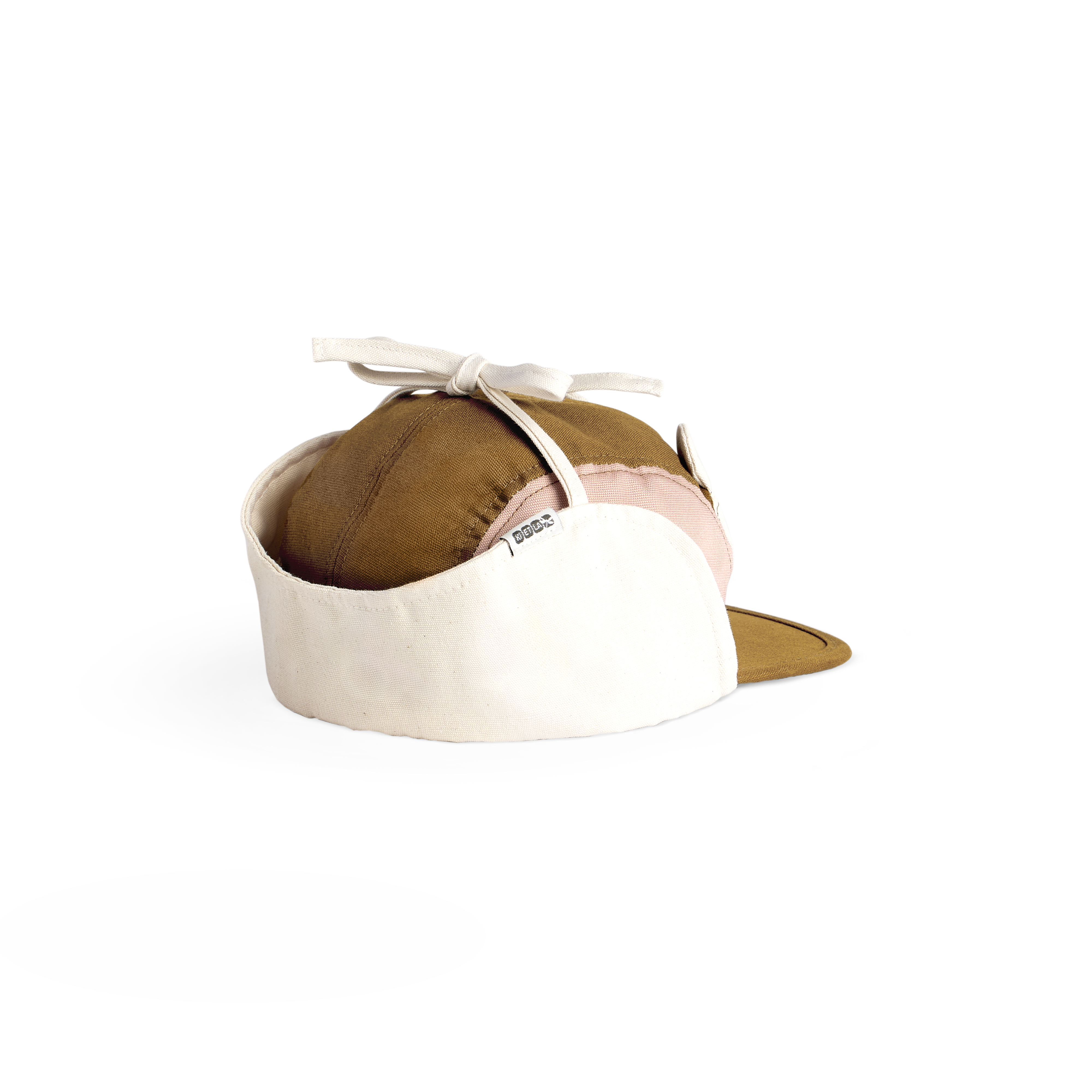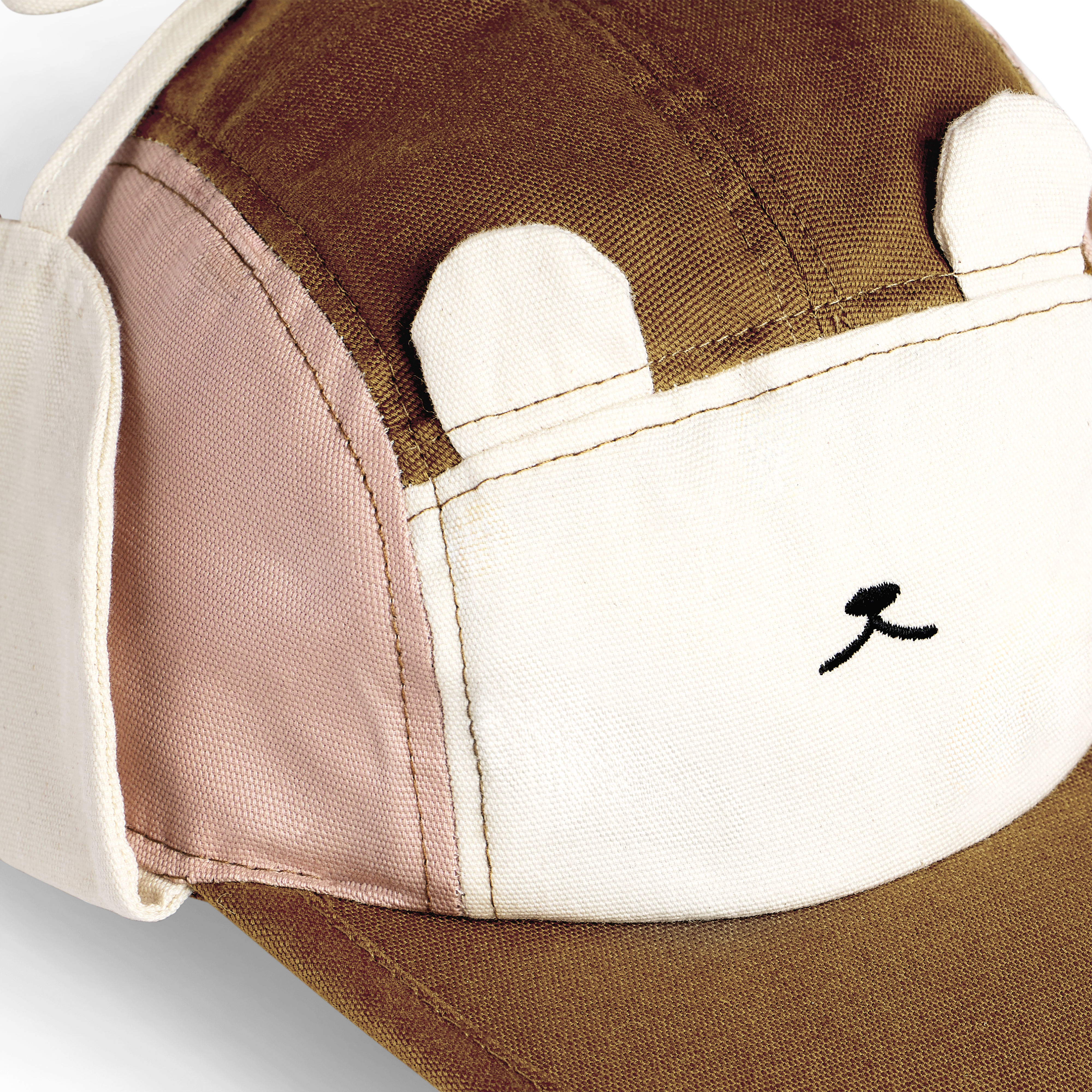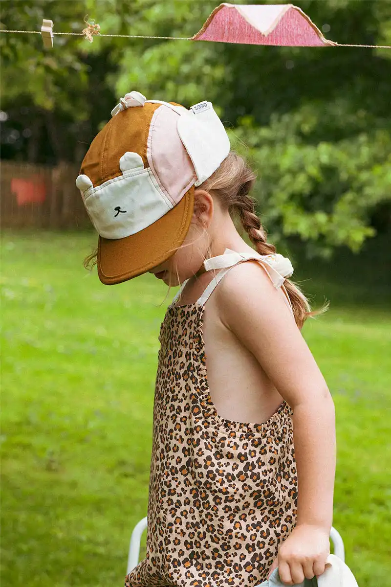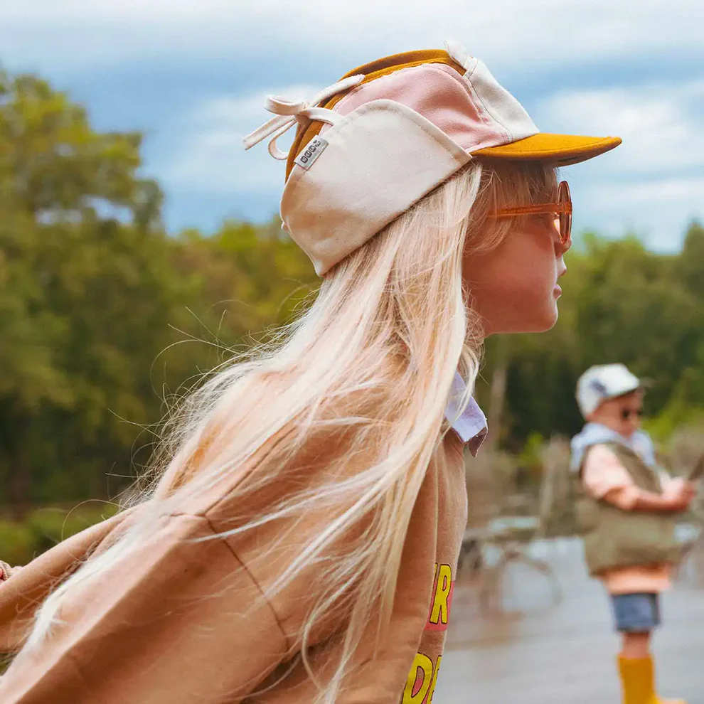 Camper cepure ir obligāts aksesuārs stilīgiem un piedzīvojumu kāriem bērniem. Tā izceļas ar vintage stila apaļu nagu un platu malu, kuru iespējams nolaist, lai pasargātu kaklu. Izgatavota Itālijā no GOTS sertificētas organiskās kokvilnas, tā nodrošina optimālu aizsardzību pret sauli āra aktivitātēm. Papildus tam cepurē ir unikāla sistēma briļļu pakarināšanai.