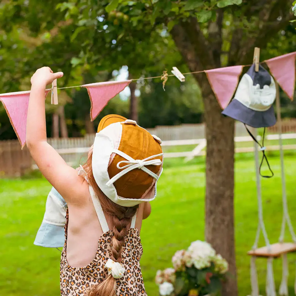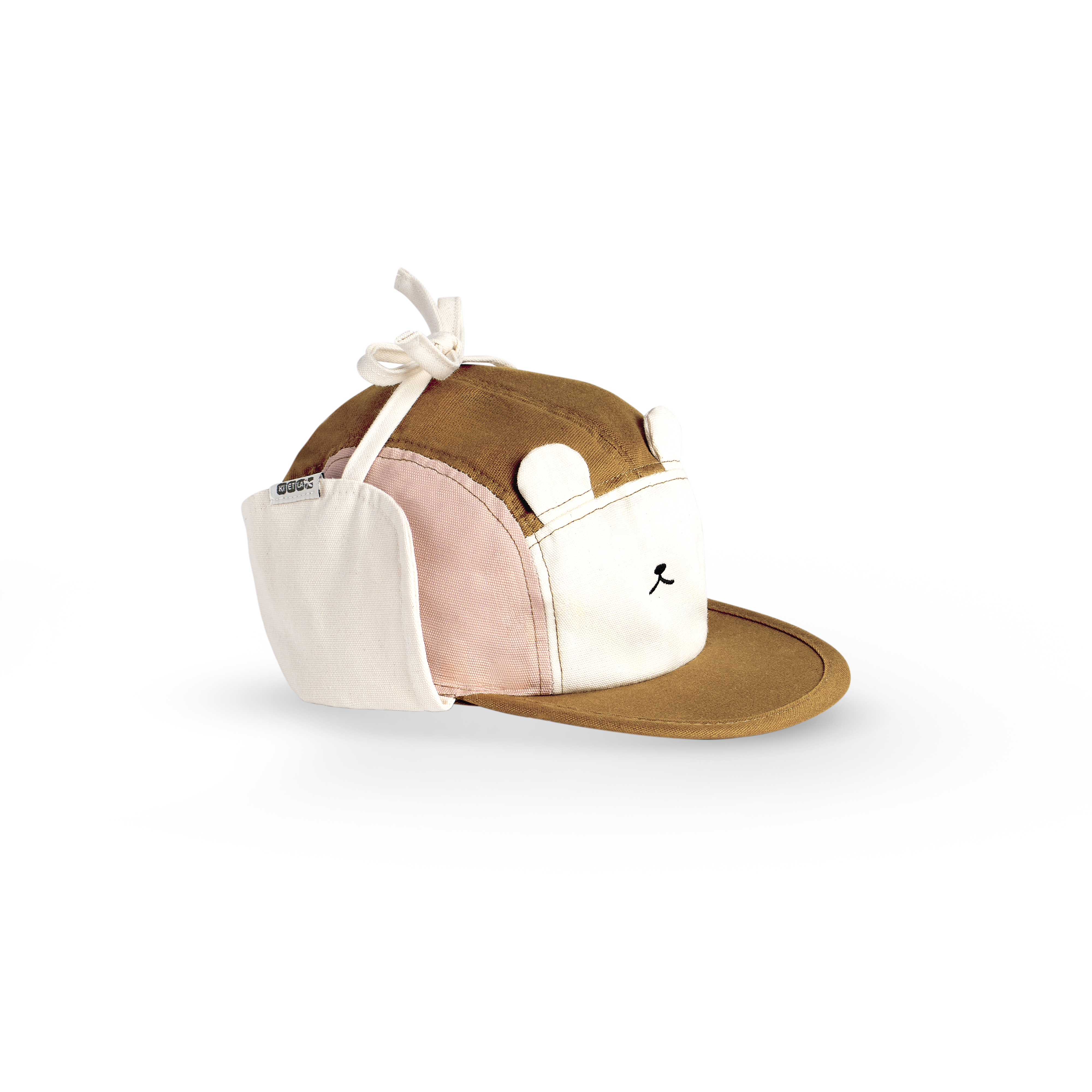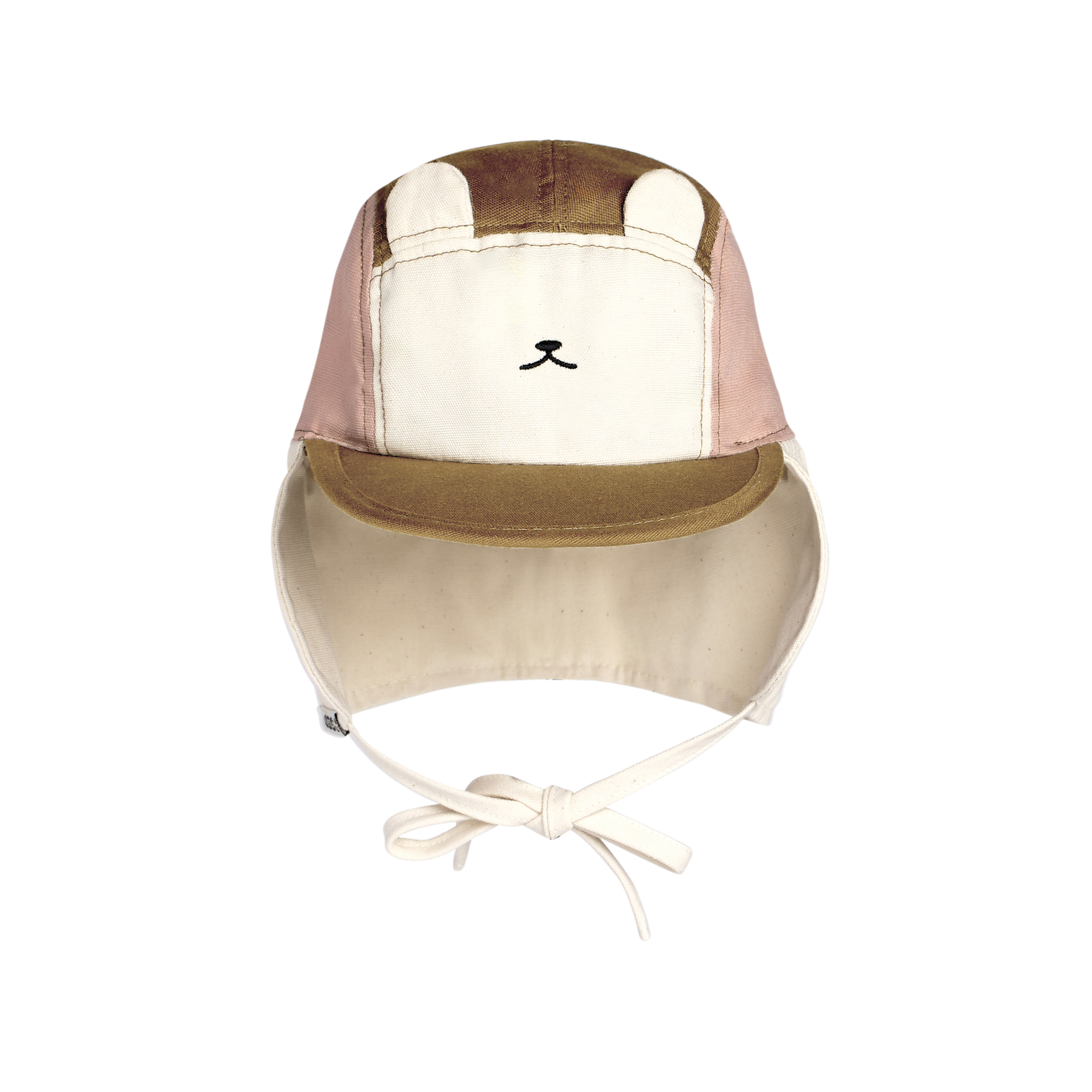 Camper cepure ir obligāts aksesuārs stilīgiem un piedzīvojumu kāriem bērniem. Tā izceļas ar vintage stila apaļu nagu un platu malu, kuru iespējams nolaist, lai pasargātu kaklu. Izgatavota Itālijā no GOTS sertificētas organiskās kokvilnas, tā nodrošina optimālu aizsardzību pret sauli āra aktivitātēm. Papildus tam cepurē ir unikāla sistēma briļļu pakarināšanai.