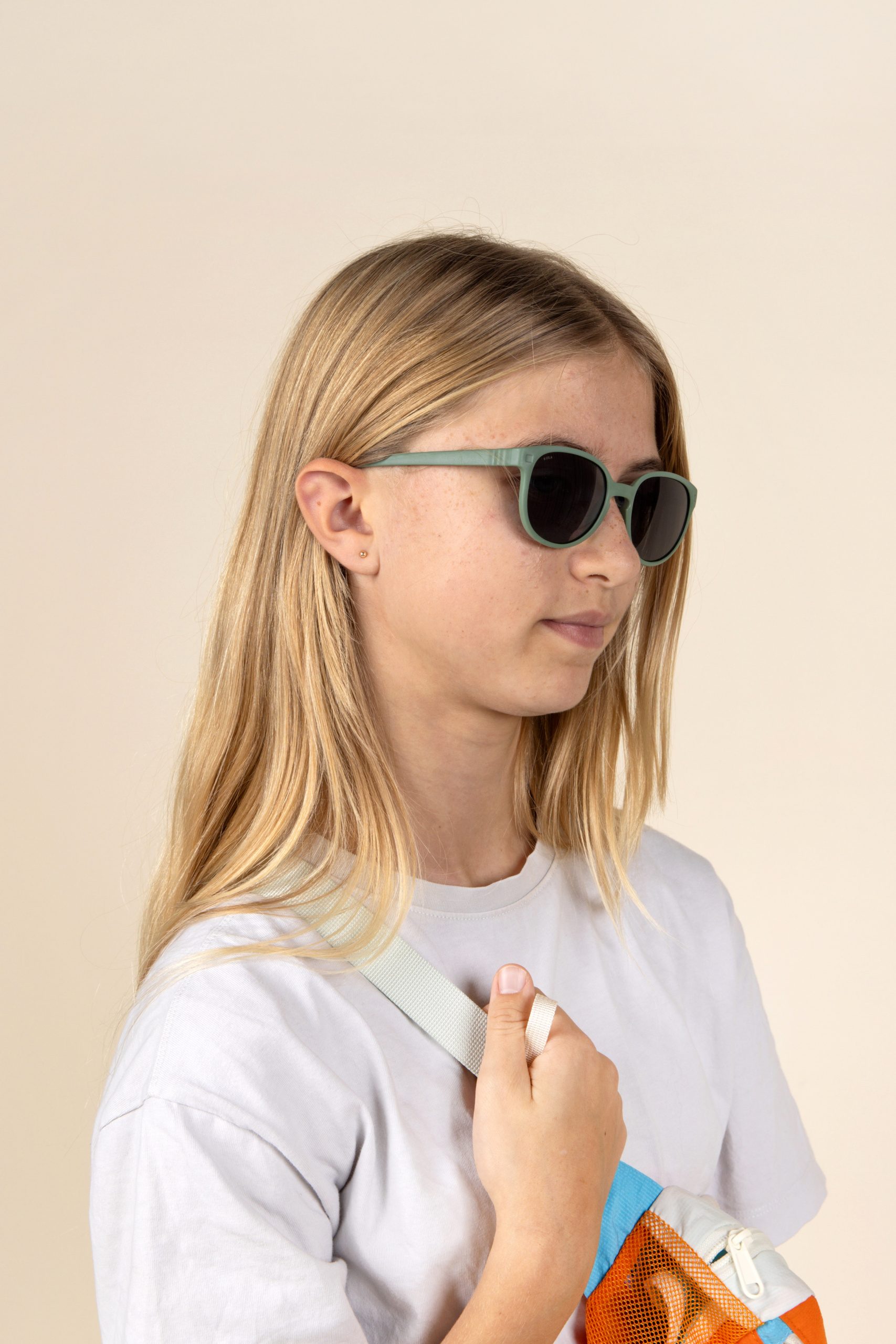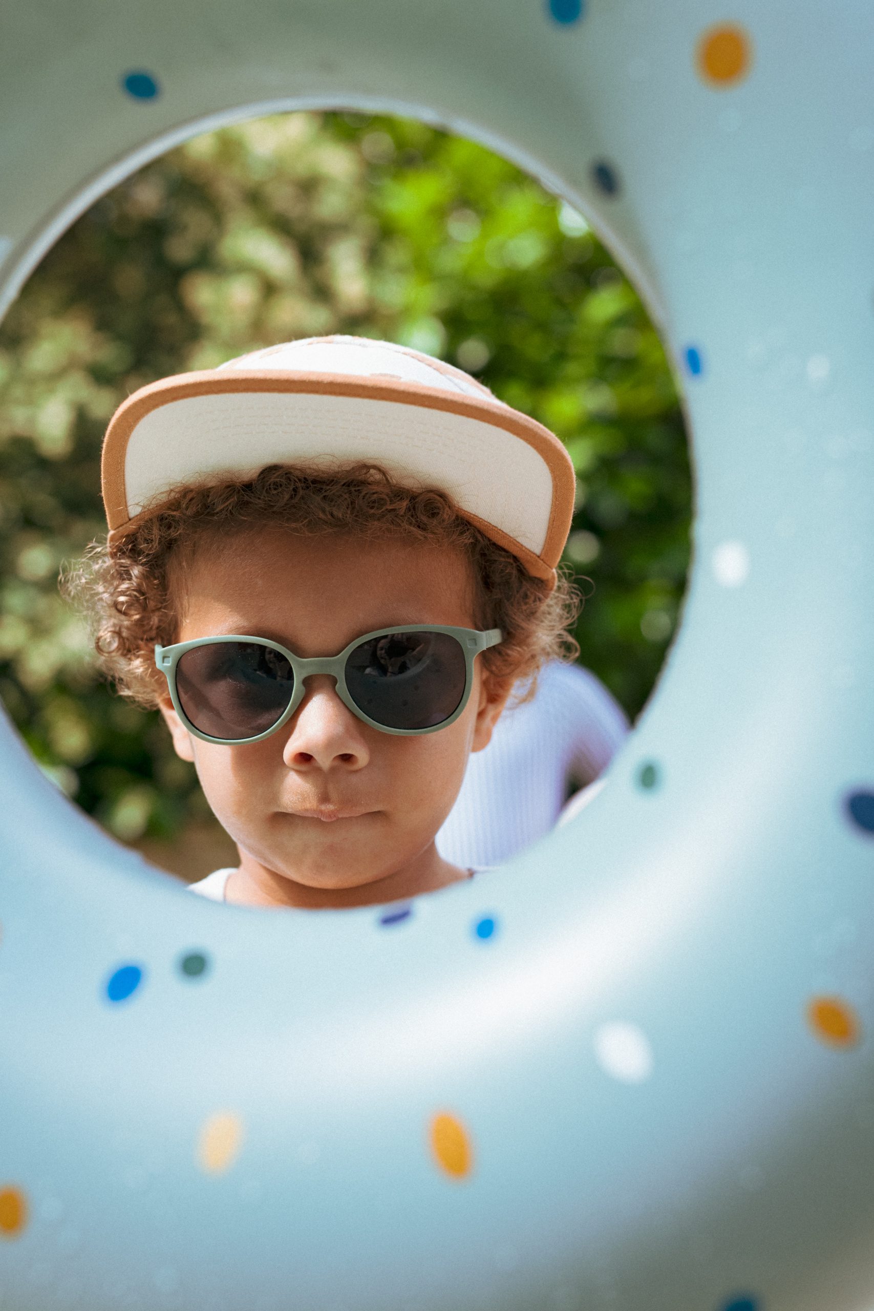 KIETLA Wazz bērnu saulesbrilles ir ar klasiska pieaugušo “Keyhole” (atslēgas cauruma) brilles dizainu, lai izskatītos kā mamma un tētis? Brillēm nav skrūvju, tāpēc nav riska, ka mazas daļiņas varētu nokļūt bērna pirkstos un tālāk mutē. Brillēm ir viengabala, ļoti elastīgs, izturīgs rāmis. Lēcām ir augsta 3. kategorijas UV aizsardzība, un tās izgatavotas no izturīga polikarbonāta stikla.