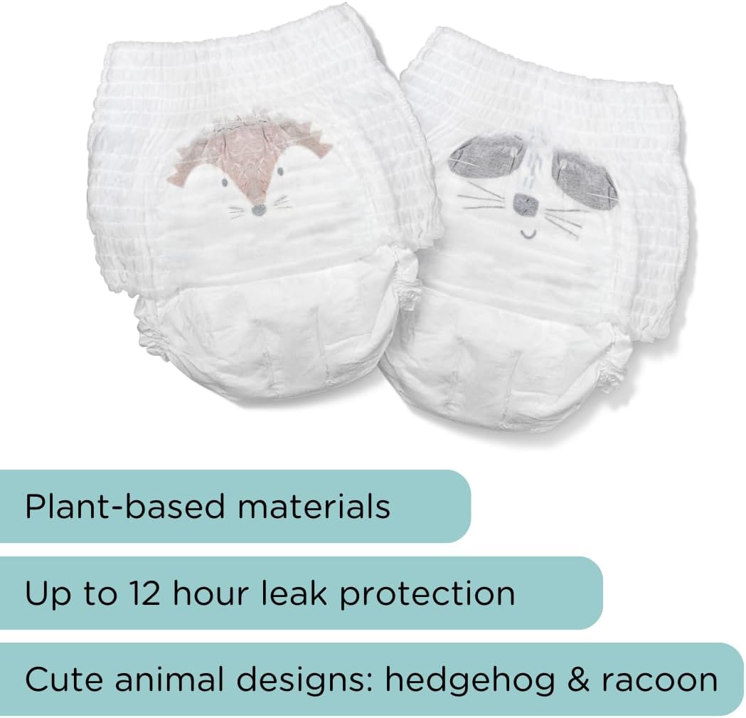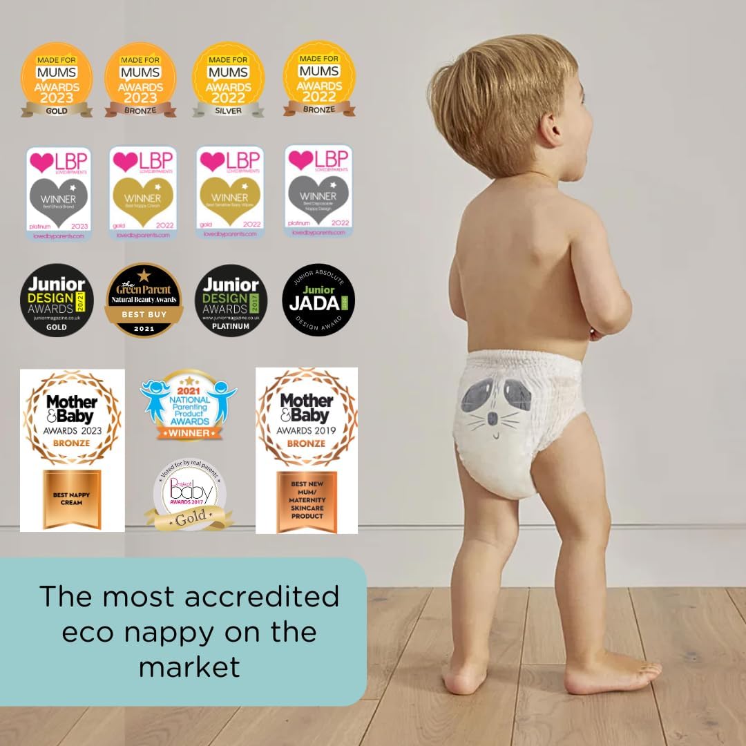Mīkstais iekšējais un ārējais pārklājums ir izgatavots no dabīgiem augu izcelsmes materiāliem. Uzsūcošais slānis veidots no hlora nesaturošas koksnes celulozes, kas nodrošina aizsardzību pret noplūdēm līdz 12 stundām. Priekšējais panelis, līmlentas, noplūdes barjeras un iepakojums ir darināti no bioloģiski noārdāma materiāla, kas pilnībā sairst 3–6 gadu laikā. Jostas daļa pielāgojas mazuļa ķermenim un kustībām.