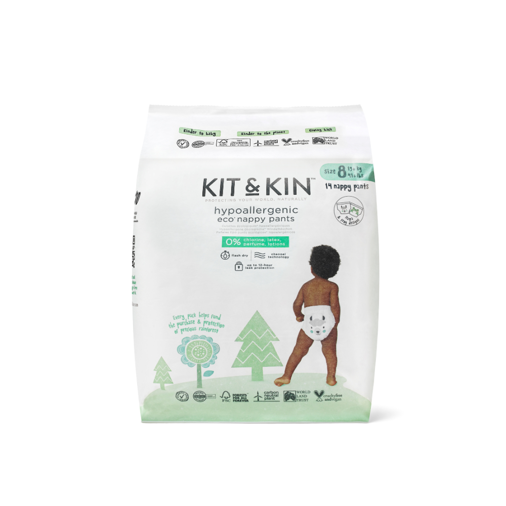 Kit&Kin autiņbiksītes, kas ir ieguvušas vairākas balvas, ir dermatologu apstiprinātas. Augstākās kvalitātes autiņbiksītes ir hipoalerģiskas. Uz autiņbiksīšu aizmugures ir dažādu dzīvnieku sejas apdrukas, padarot tās īpaši mīlīgas. Izmēram 19+ kg ir vardes un alpakas raksts.