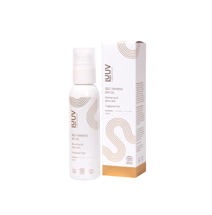 LUUV paštonējošā sausā eļļa ir sertificēta ar globāli atzīto ECOCERT/COSMOS ekosertifikātu. Šis dabiskais paštonētājs nodrošina dabisku zeltainu iedegumu. Sausā eļļa ātri uzsūcas, neatstājot taukainu virsmu, un iedegums paliek vienmērīgs. Iedegums parādās pēc vairākām lietošanas reizēm, bet dziļāks iedegums pakāpeniski pastiprinās. Sausā eļļa dziļi mitrina ādu un ir piemērota ikdienas lietošanai ķermeņa krēma vietā. Dabīgās paštonējošās aktīvās sastāvdaļas Eritruloze (aveņu cukura ekstrakts) un Dihidroksiacetons (fermentētas cukurbietes komponents) ir piemērotas pat jutīgai ādai, tās nesausina un nodrošina dabisku rezultātu. Iedegums arī izzūd vienmērīgi un dabiski, neatlupstot. Burkānu eļļa ir bagāta ar A vitamīnu un beta-karotīnu, kas mīkstina un dziļi mitrina ādu. Antioksidanti un E vitamīns palīdz saglabāt ādas jaunību. Aloe vera nomierina ādu, neatstājot taukainu virsmu. Produkts ir bez smaržas. Pēc lietošanas rokas rūpīgi nomazgāt.Lietošana: Paštonējošā sausā eļļa – preparātu vienmērīgi iemasējiet visā ķermenī. Pateicoties sausās eļļas ātrai uzsūkšanās spējai, lietošana ir ļoti viegla un ērta. Lai sasniegtu un uzturētu brūnu ādas toni, ieteicams lietot divas līdz trīs reizes nedēļā, bet var lietot arī katru dienu ķermeņa krēma vietā. Dabīgas sastāvdaļas un eļļas mitrina ādu, tādēļ paštonējošā sausā eļļa nodrošina skaistu iedegumu un mitrinātu ādu. Pēc lietošanas uzmanīgi nomazgāt rokas un pirkstu starpas.* bez smaržas* želejveida viegli uzklājama tekstūra* mitrinoša iedarbība* pakāpeniska darbība* skaists, vienmērīgs un dabisks iedegums* neatstāj traipus* VEGĀNS* LABĀKAIS DABAS SKAISTUMA PRODUKTS SUDRABA GODALGAS LAUREĀTS (Global Green Beauty Awards 2021)IGAUNIJAS PRODUKTSIeteikums: Nepieciešams katrai sievietei, kurai sirdī ir vasara!100% dabisks un VEGĀNS produktsINCI: Aqua, Aloe Barbadensis Leaf Juice, Glicerīns, Eritruloze*, Dihidroksiacetons*, Helianthus Annuus & Beta Karotīns (Burkānu eļļa), Ksanāna sveķi*, Nātrija benzoāts, Kālija sorbāts