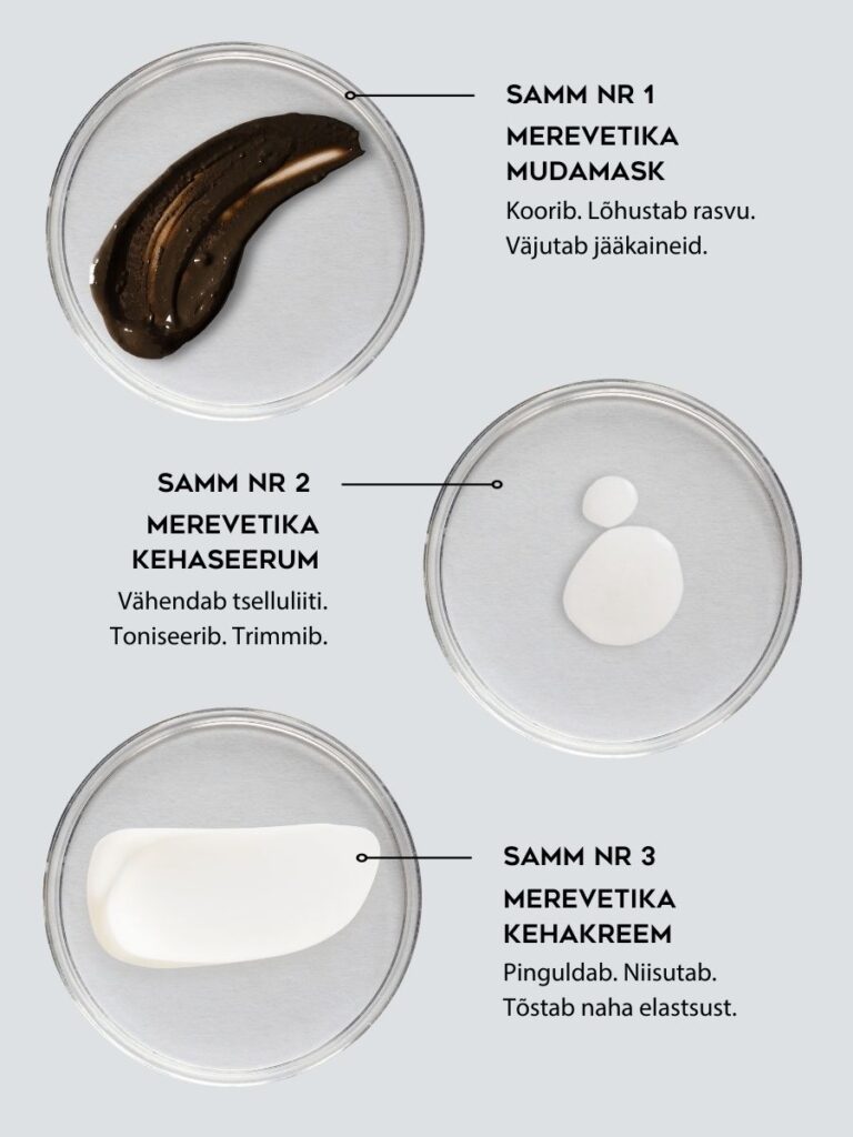 - Fucus Vesiculosus (jūras aļģu) ekstrakts veicina ādas šūnu atjaunošanos, tādējādi uzlabojot ādas kopējo izskatu.