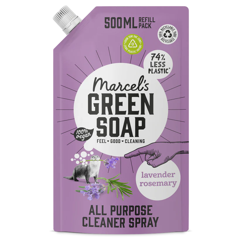 Marcel’s Green Soap uzpildes iepakojums ir vismaz 97% bioloģiski noārdāms. Ar šo izdevīgo uzpildes iepakojumu jūs ietaupāt 56% plastmasas salīdzinājumā ar pudeli.